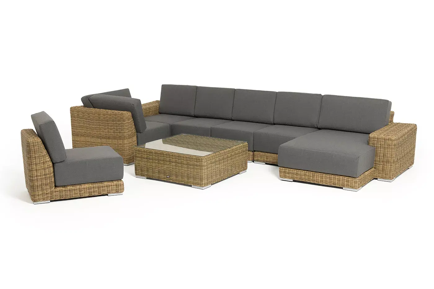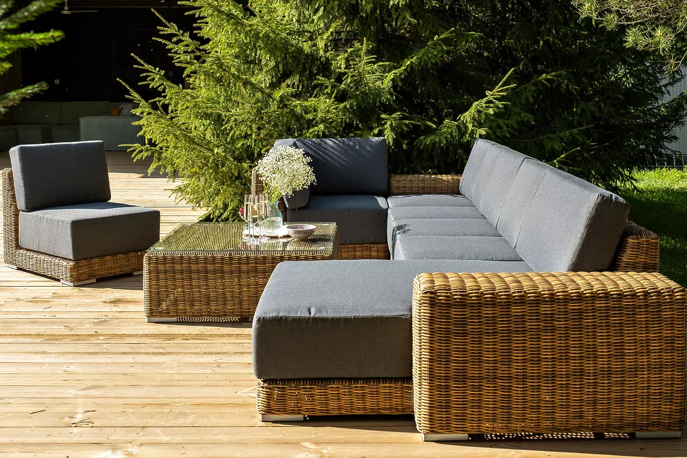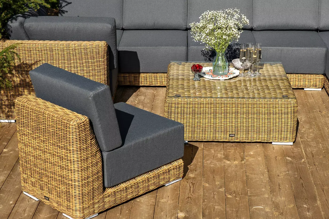 Составная и легко трансформирующаяся лаунж-зона «Капри» гармонично дополнит зону отдыха на частной территории.