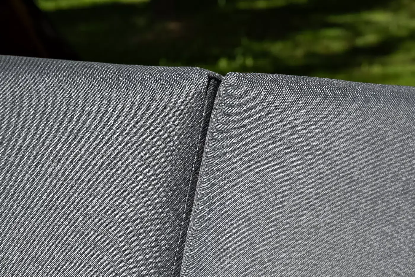 Модули дивана и кушетка укомплектованы подушками со съемными чехлами серого цвета. Защитные качества материала усилены путем его обработки влагоотталкивающими составами.