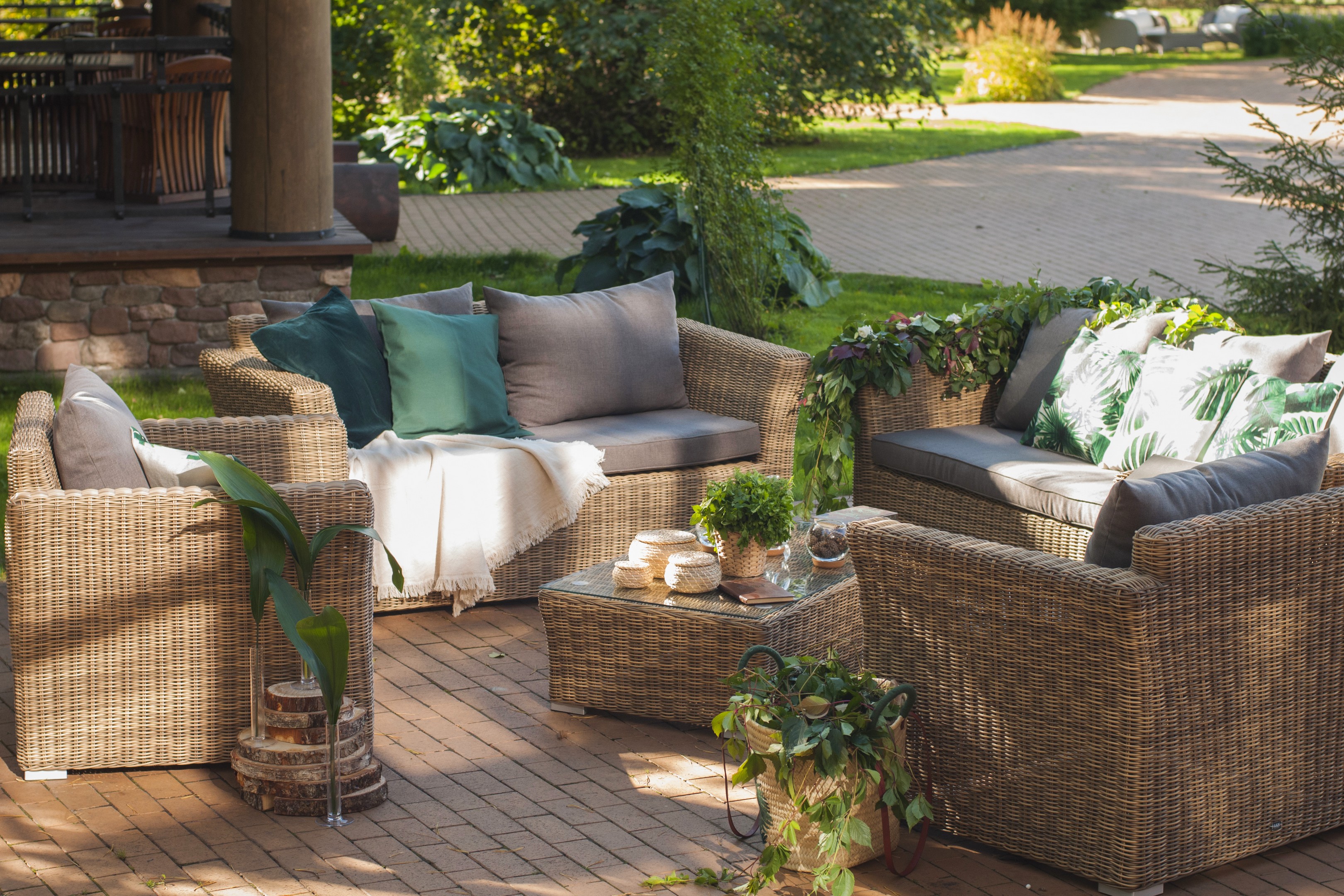 Садовые диваны и кресла поставляются вместе с подушками. Они упакованы в съёмные чехлы, которые при необходимости можно стирать. Для их производства берется полиэстер, плотность 300гр/м2. Материал защищен с помощью влагоотталкивающих составов. Цвет подушек – серый.