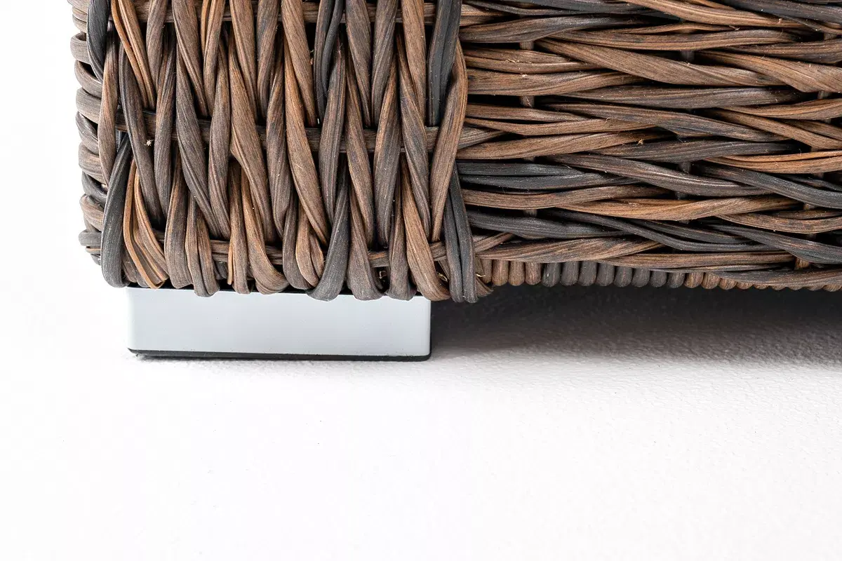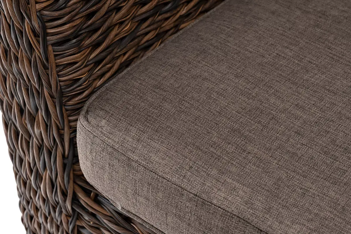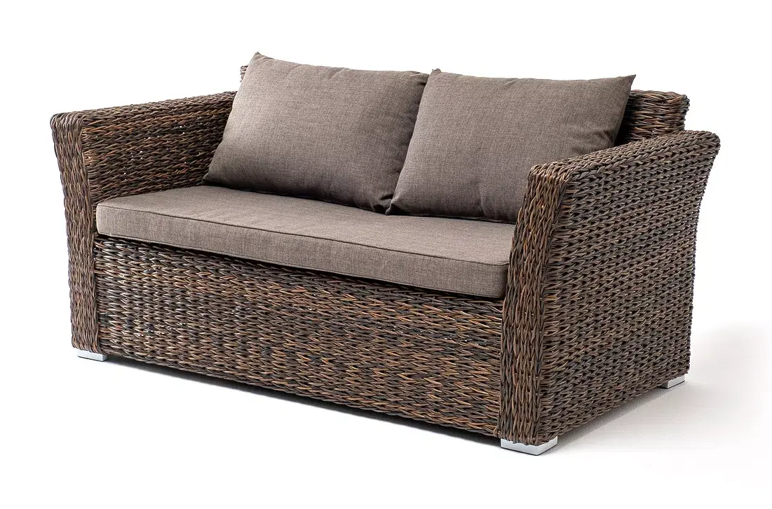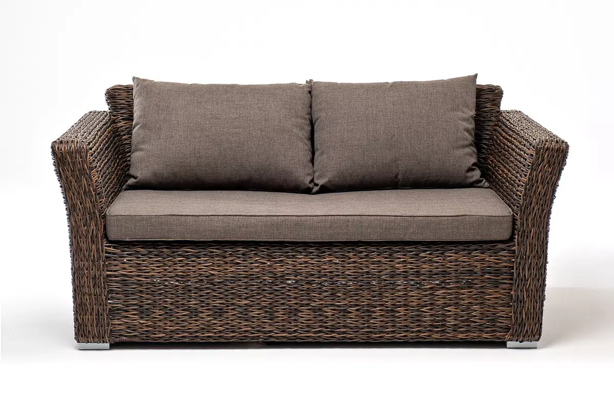 Диван выполнен из искусственного ротанга вида «гиацинт» коричневого цвета, оплетенного вручную.
