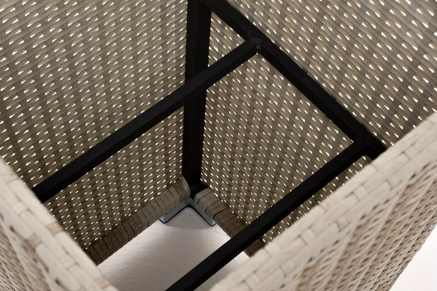 В основе алюминиевый каркас, который вручную оплетен ротангом.