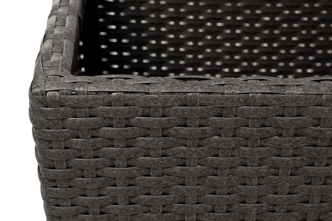Плетеное кашко «Капучино» подходит для комнатных и уличных растений. Изготовлено из плоского искусственного ротанга в цвете графит. Обладает высокой стойкостью к погодным условиям, перепадам температуры, не подвергается коррозии, поэтому можно использовать на открытом воздухе круглый год.