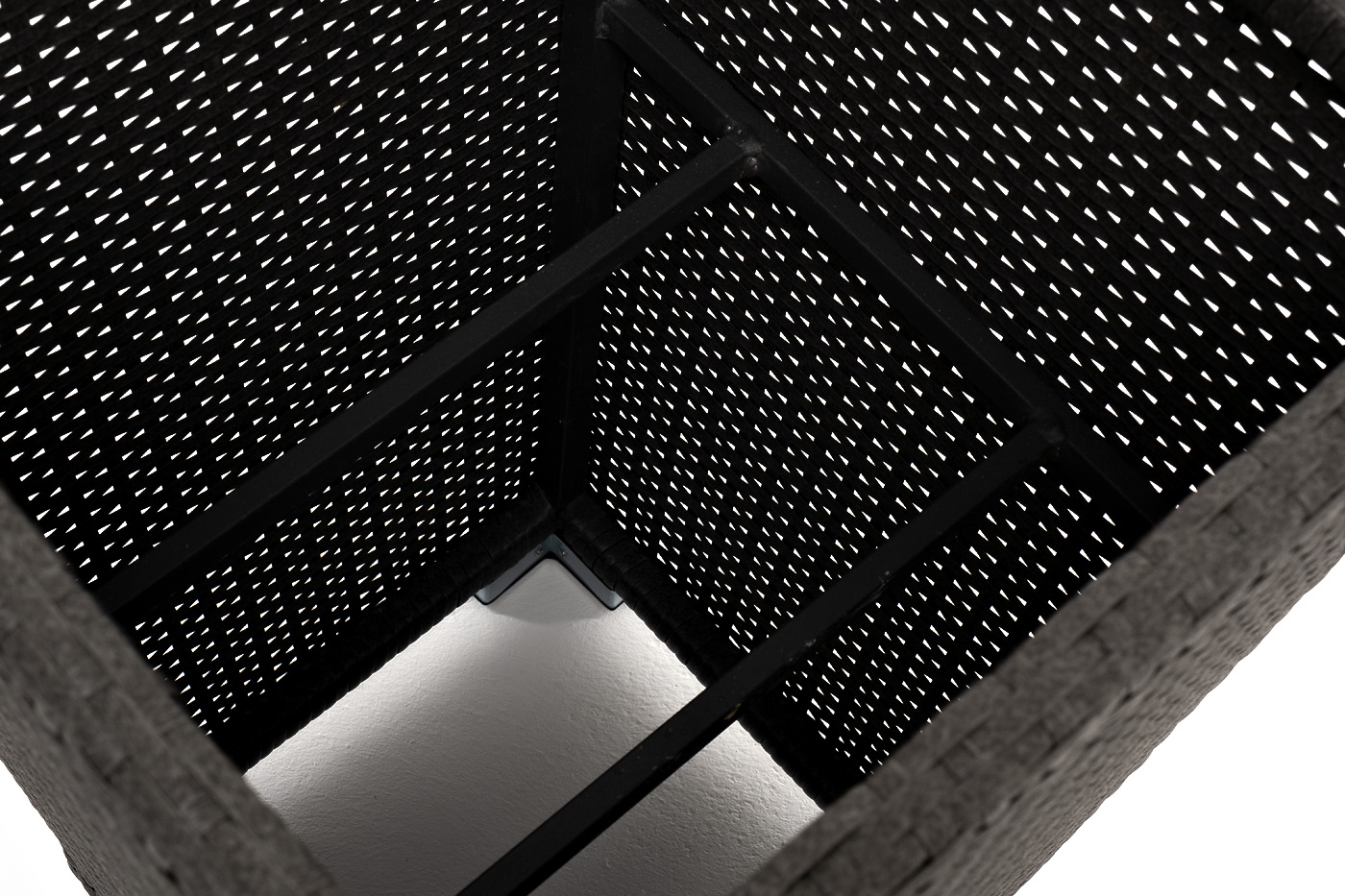 В основе алюминиевый каркас, который вручную оплетен ротангом.