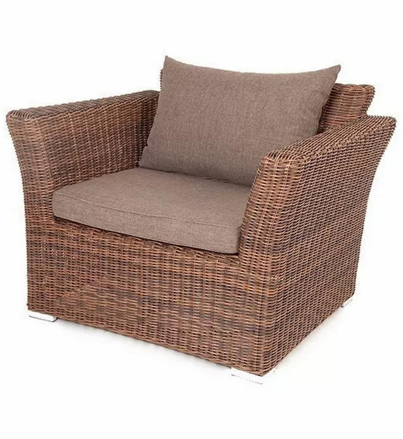 Плетеное кресло «Капучино» дает возможность комфортно провести время в зоне отдыха. Размер модели – 1040×865×815 мм.