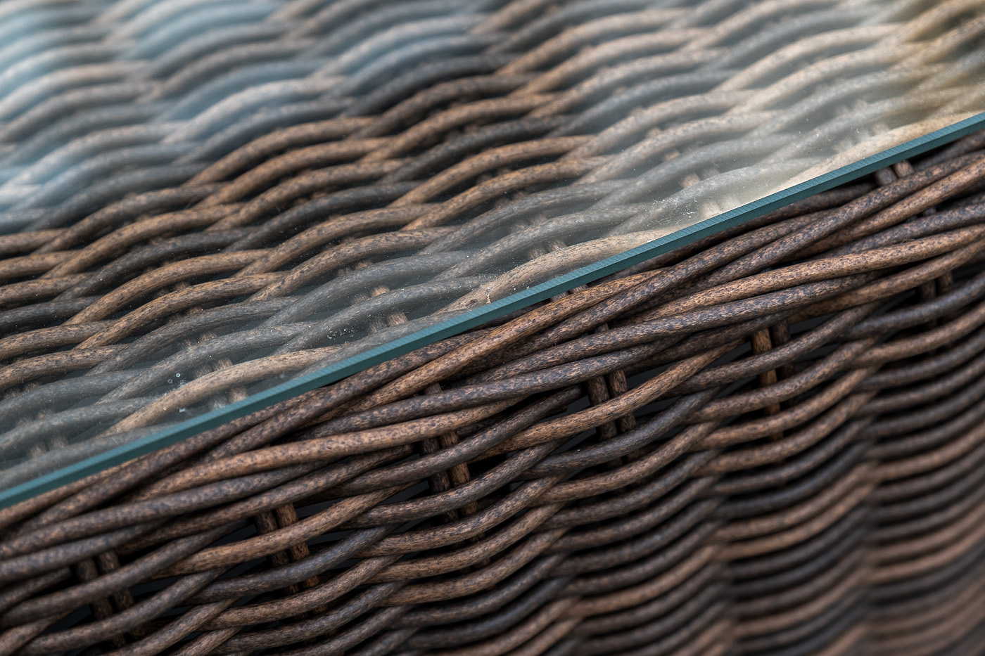 Поверхность плетеного столика представляет столешница из закаленного стекла – 5 мм.