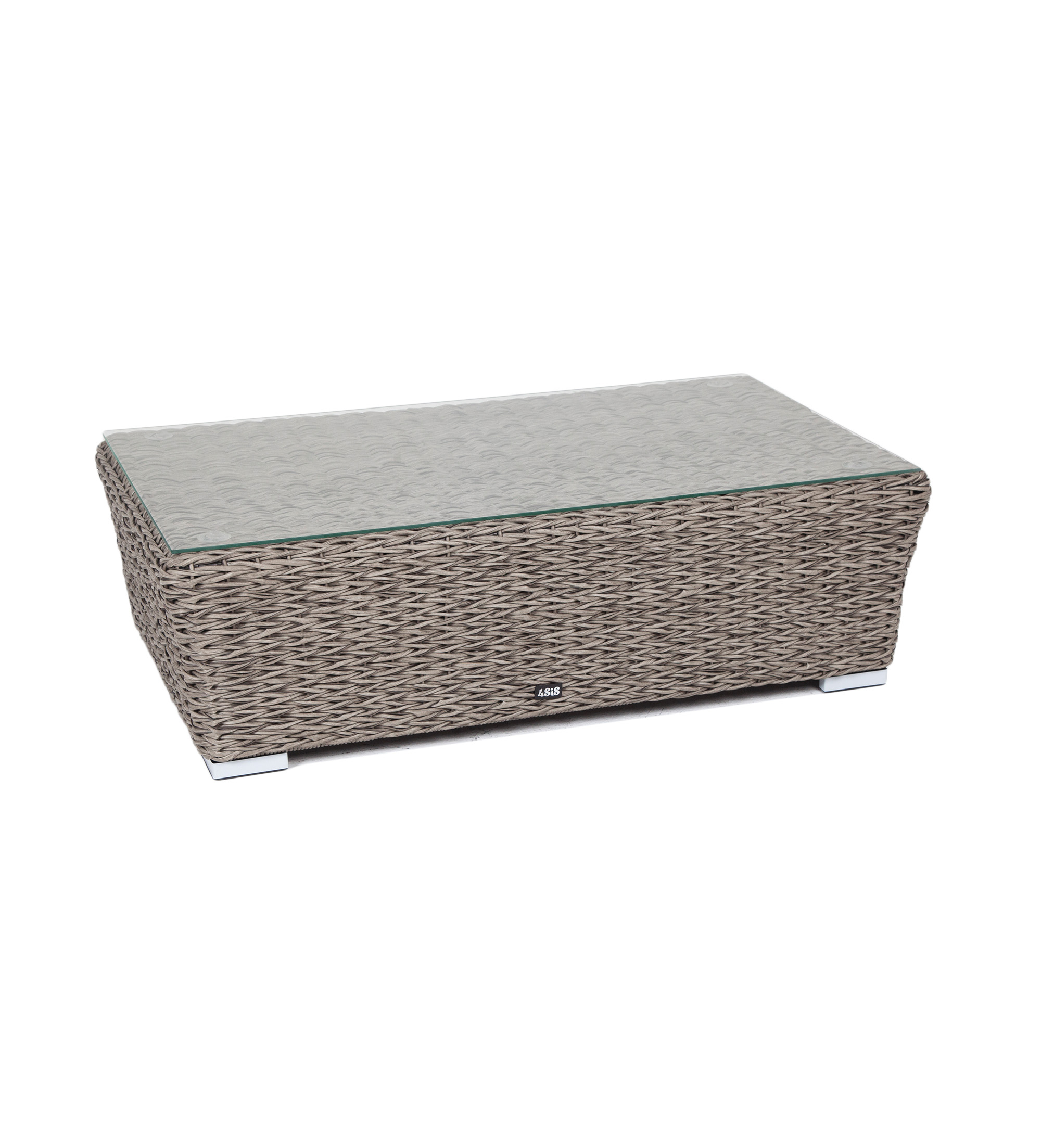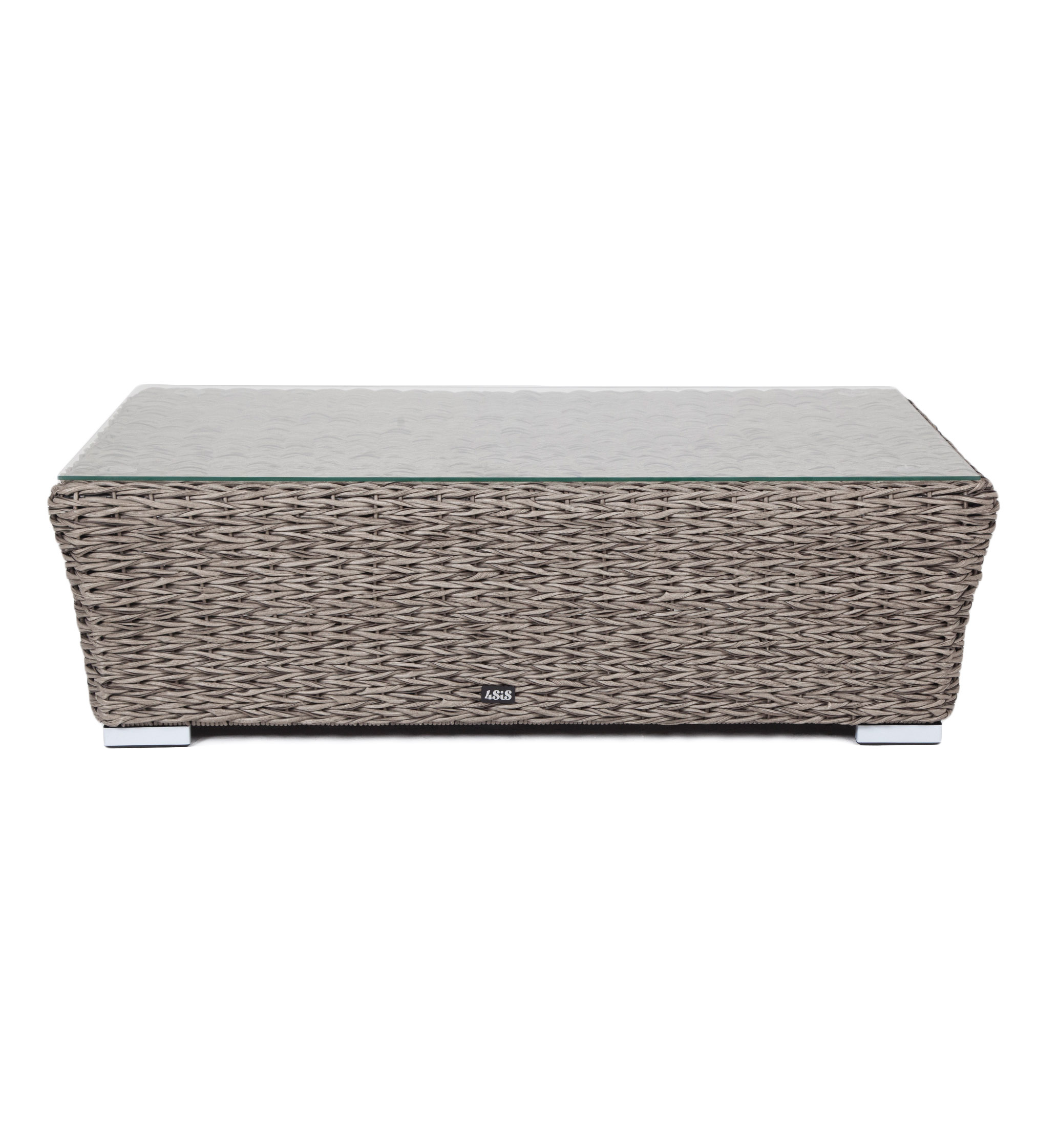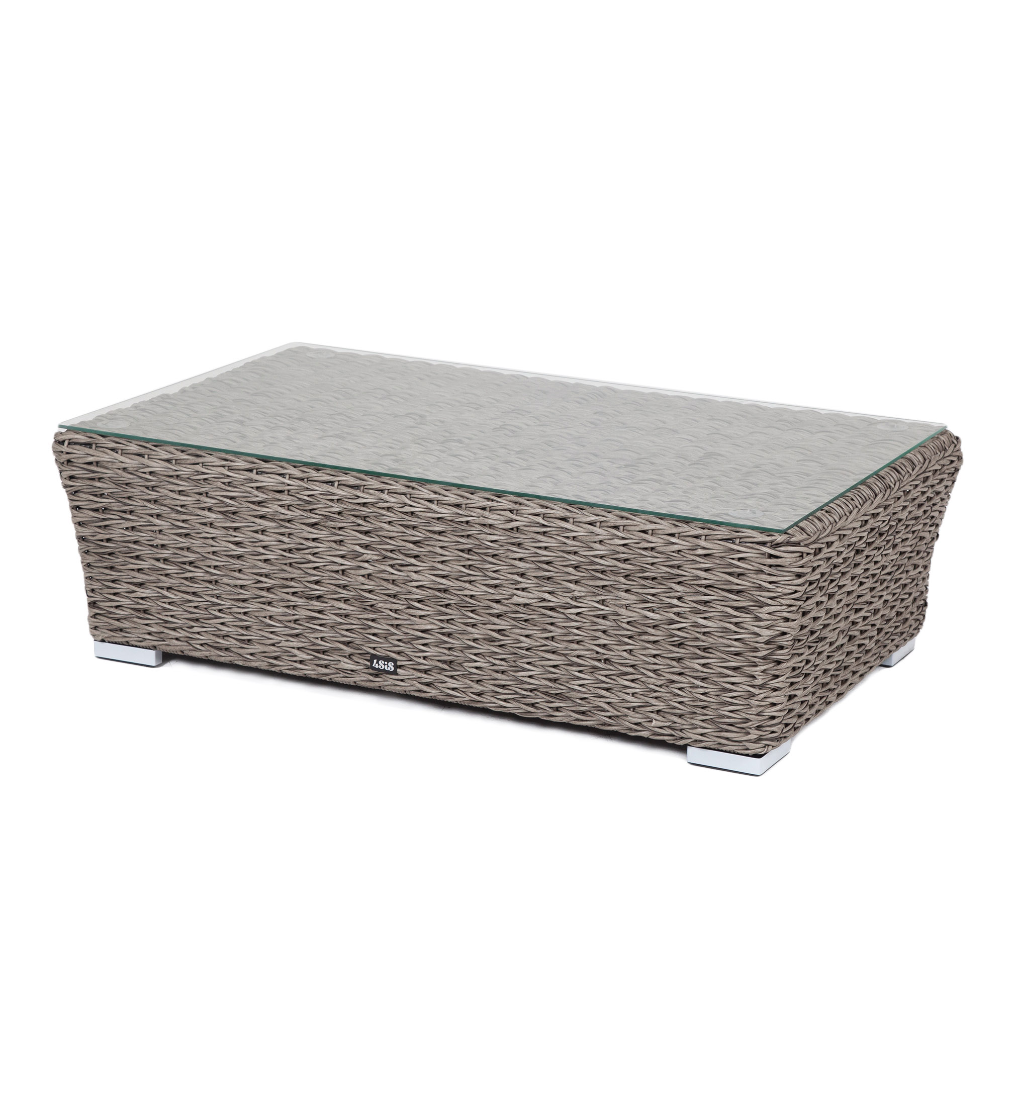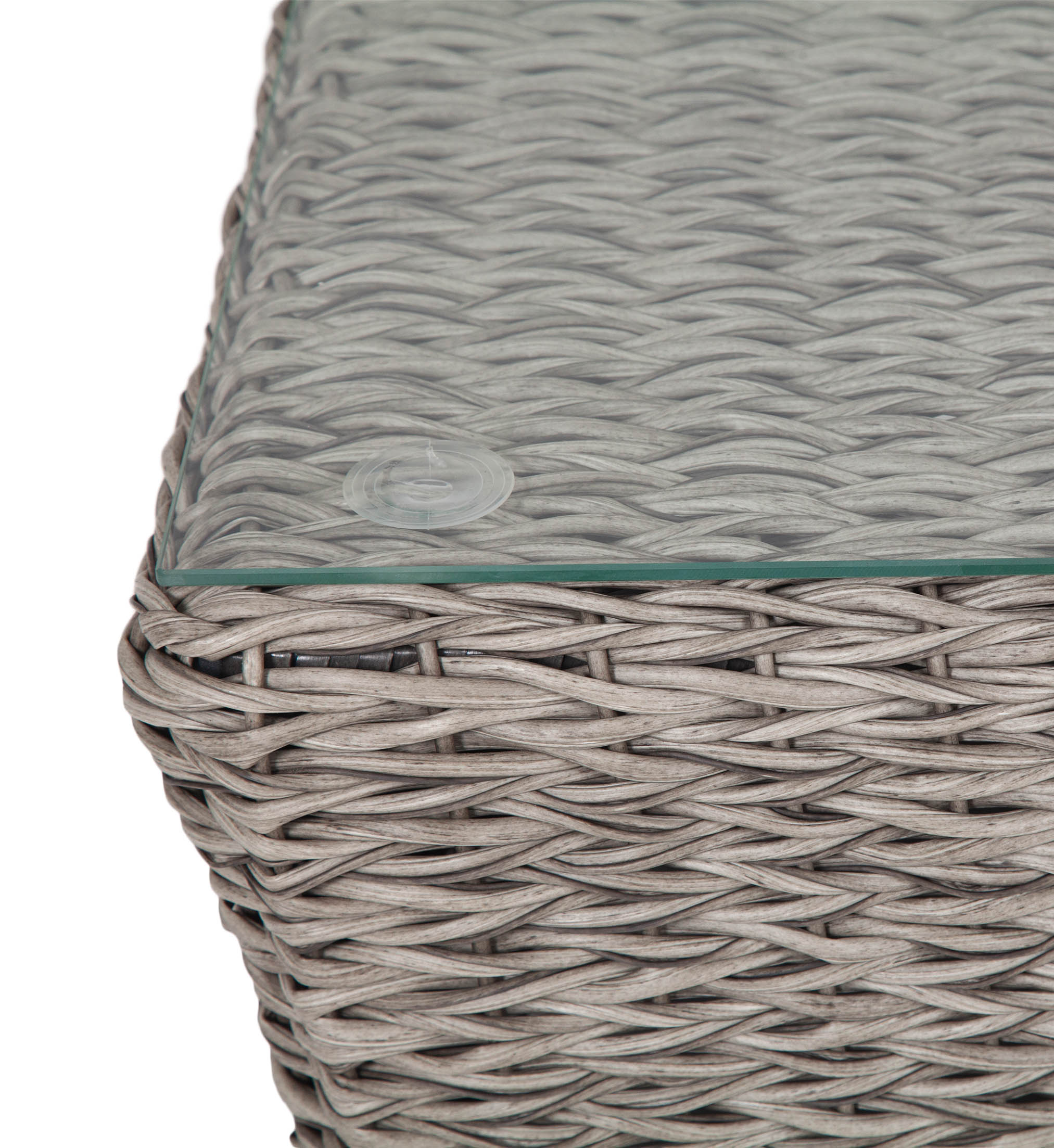 Журнальный столик «Капучино» из искусственного ротанга вида "гиацинт" серого оттенка обладает прочным каркасом, изготовленным из алюминия, оплетка которого произведена ручным способом. Поверхность защищена столешницей из 5 мм стекла.
