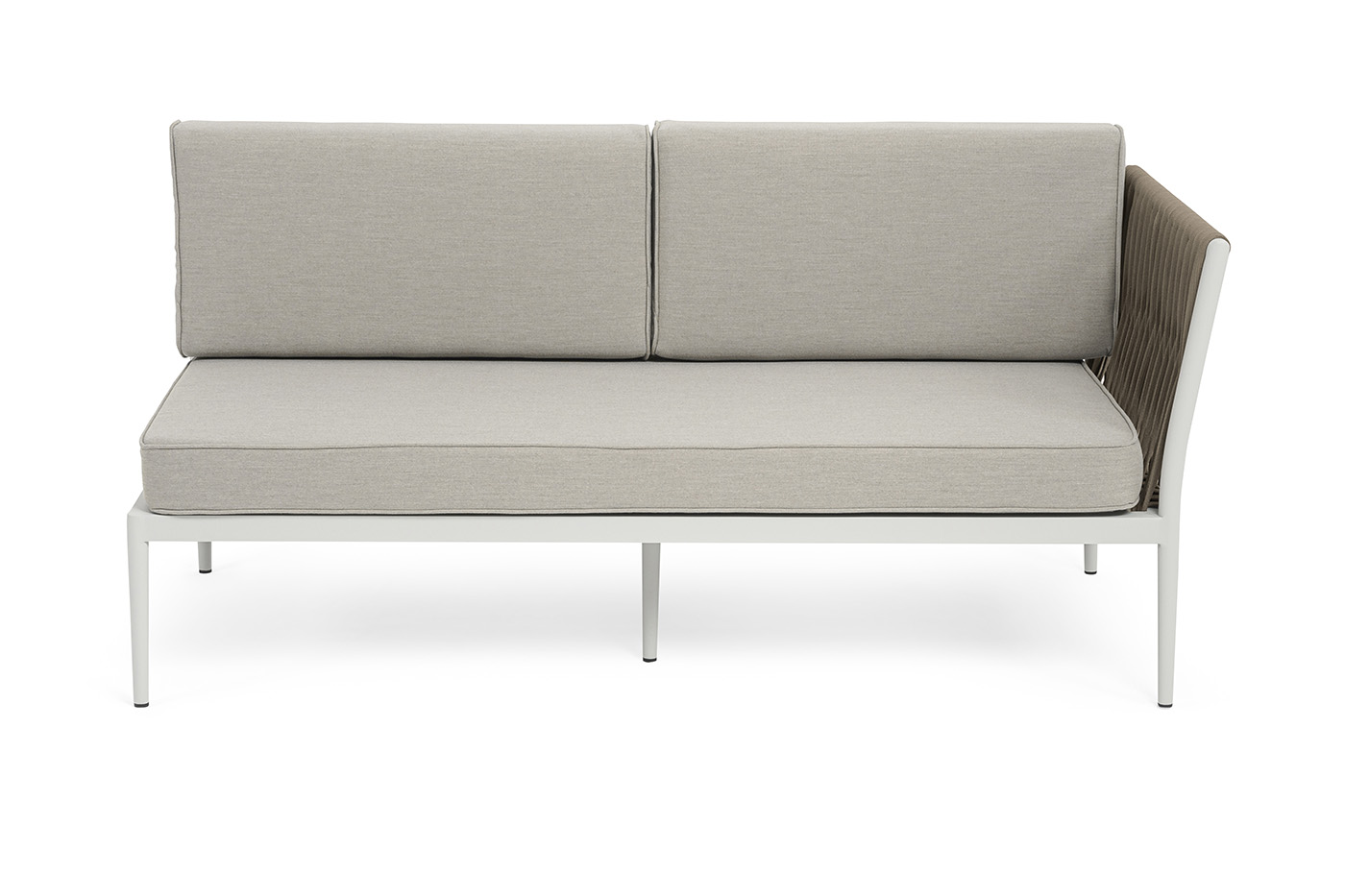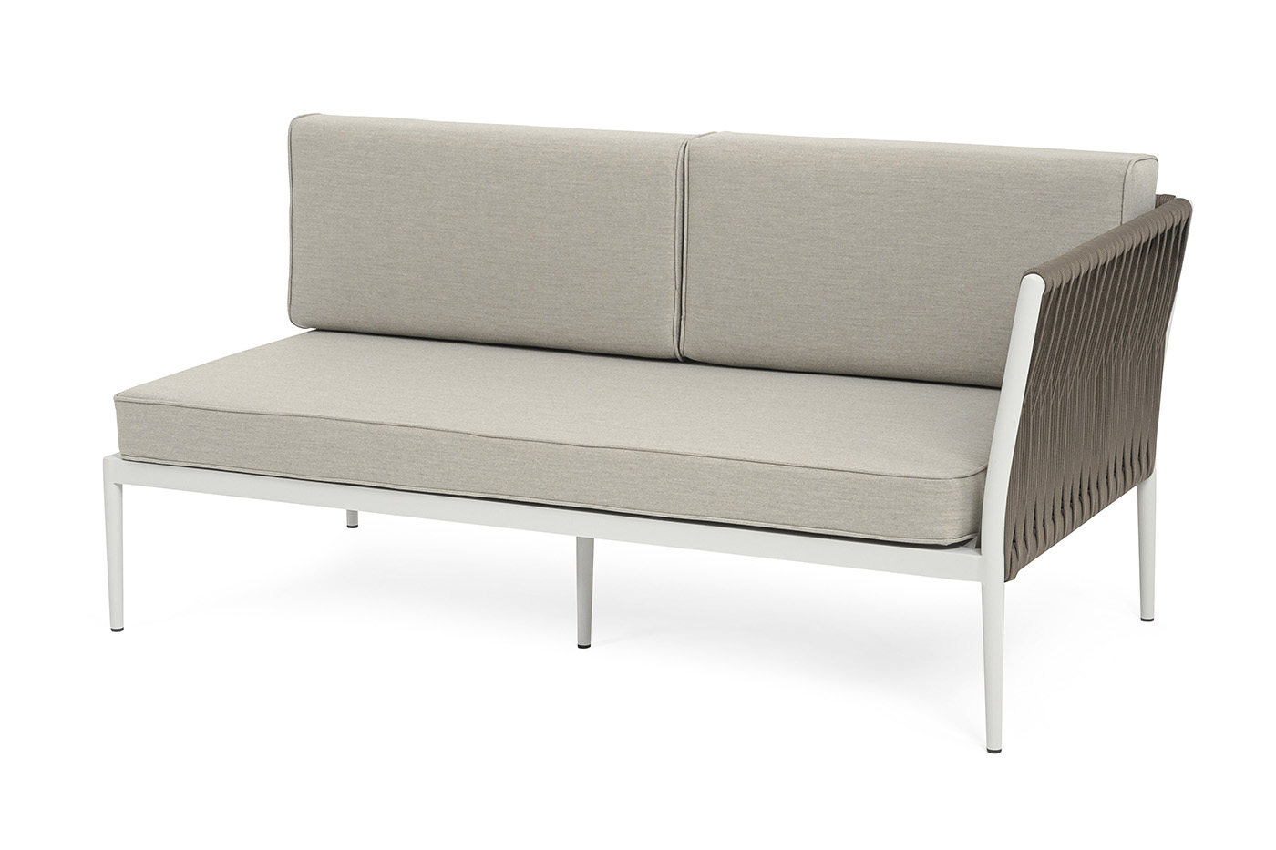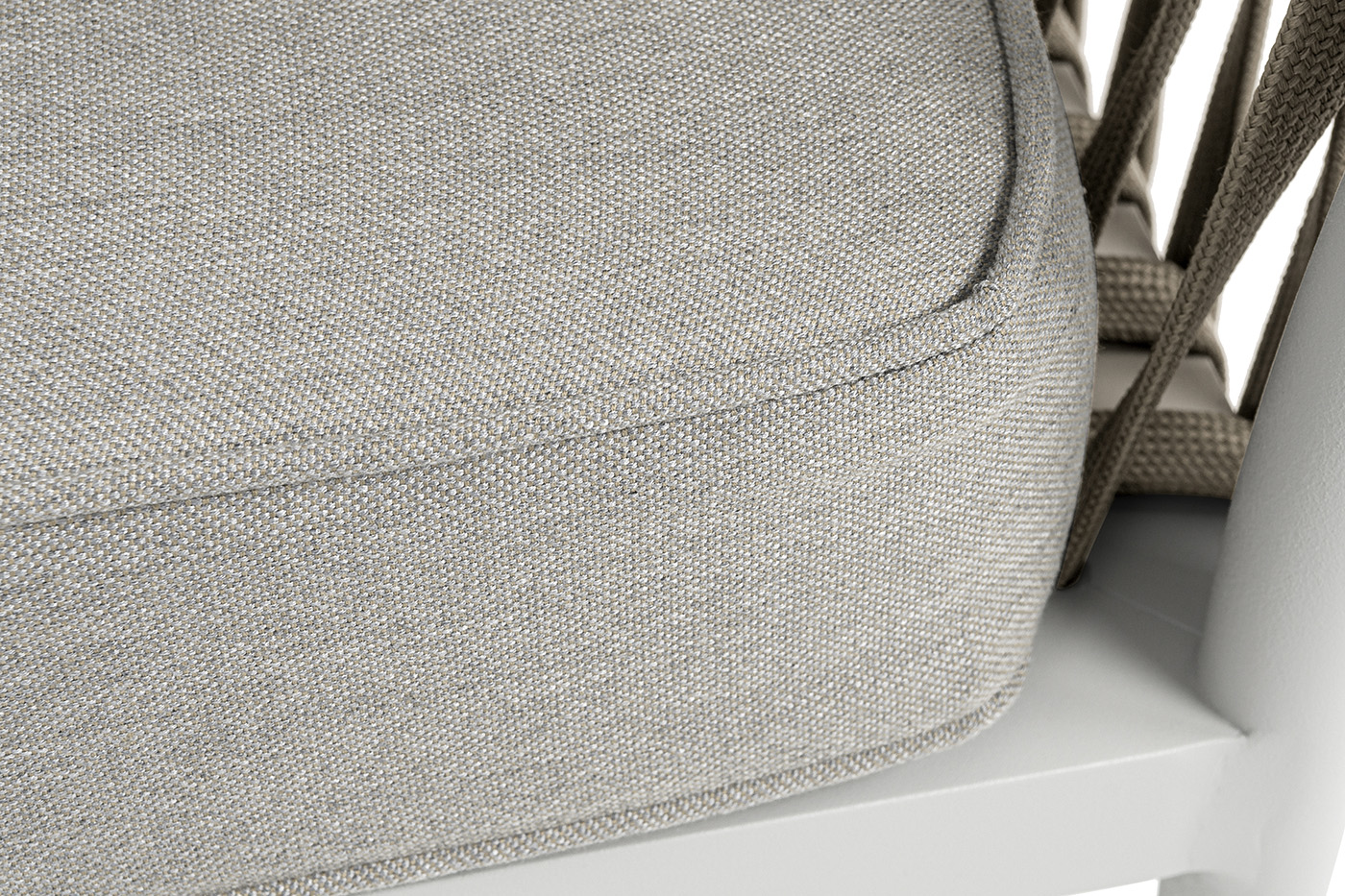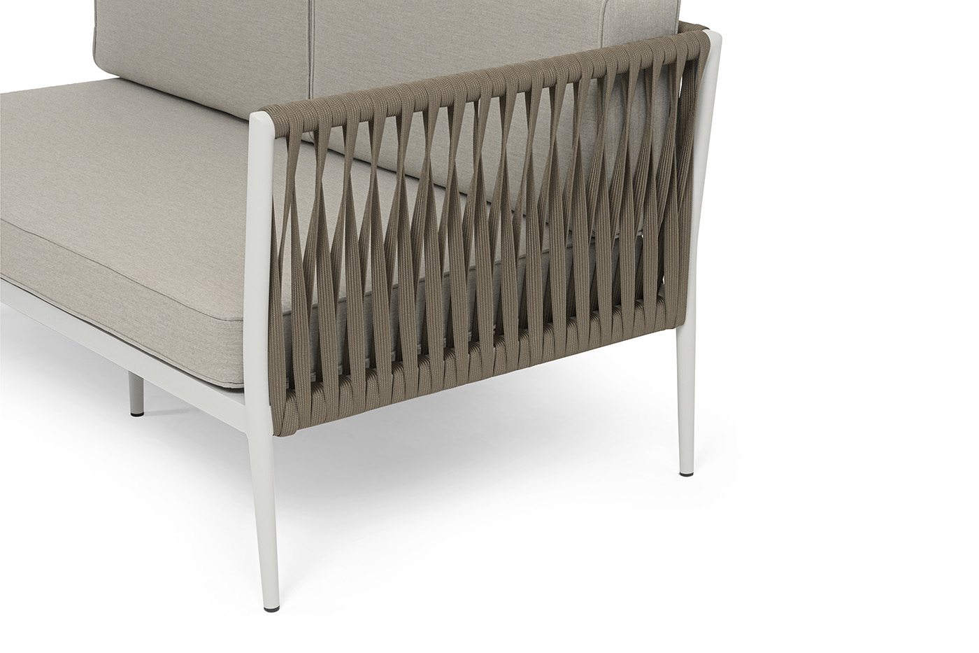 Изготовлен из качественного алюминиевого профиля, окрашенного порошковой краской в светло-серый (RAL7035) цвет. Каркас оплетен плоским роупом, шириной 23 мм, серо-коричневого цвета.