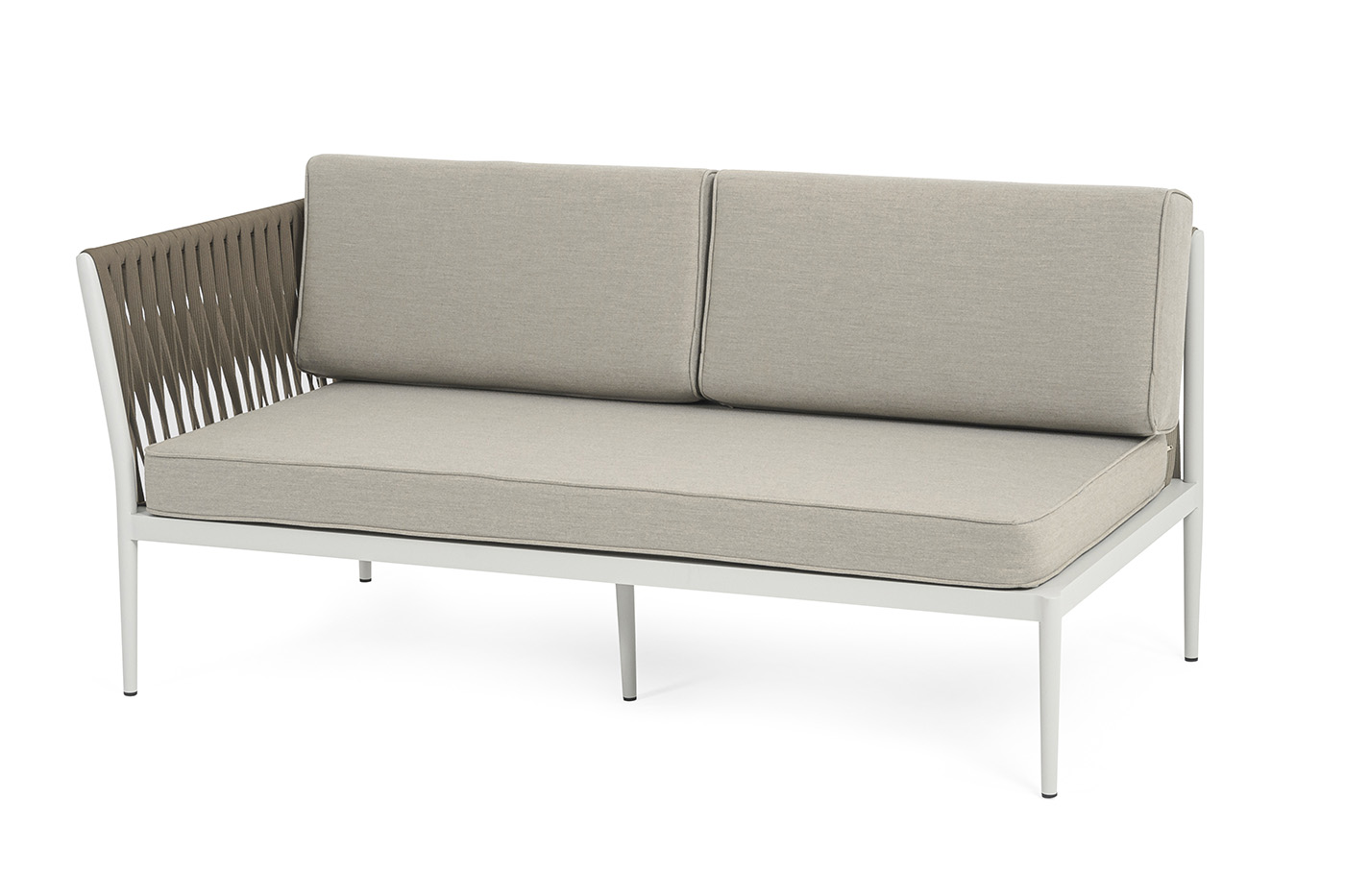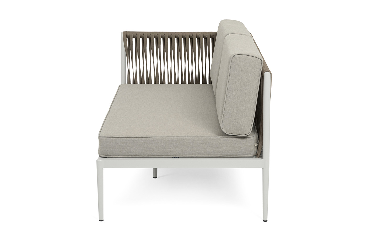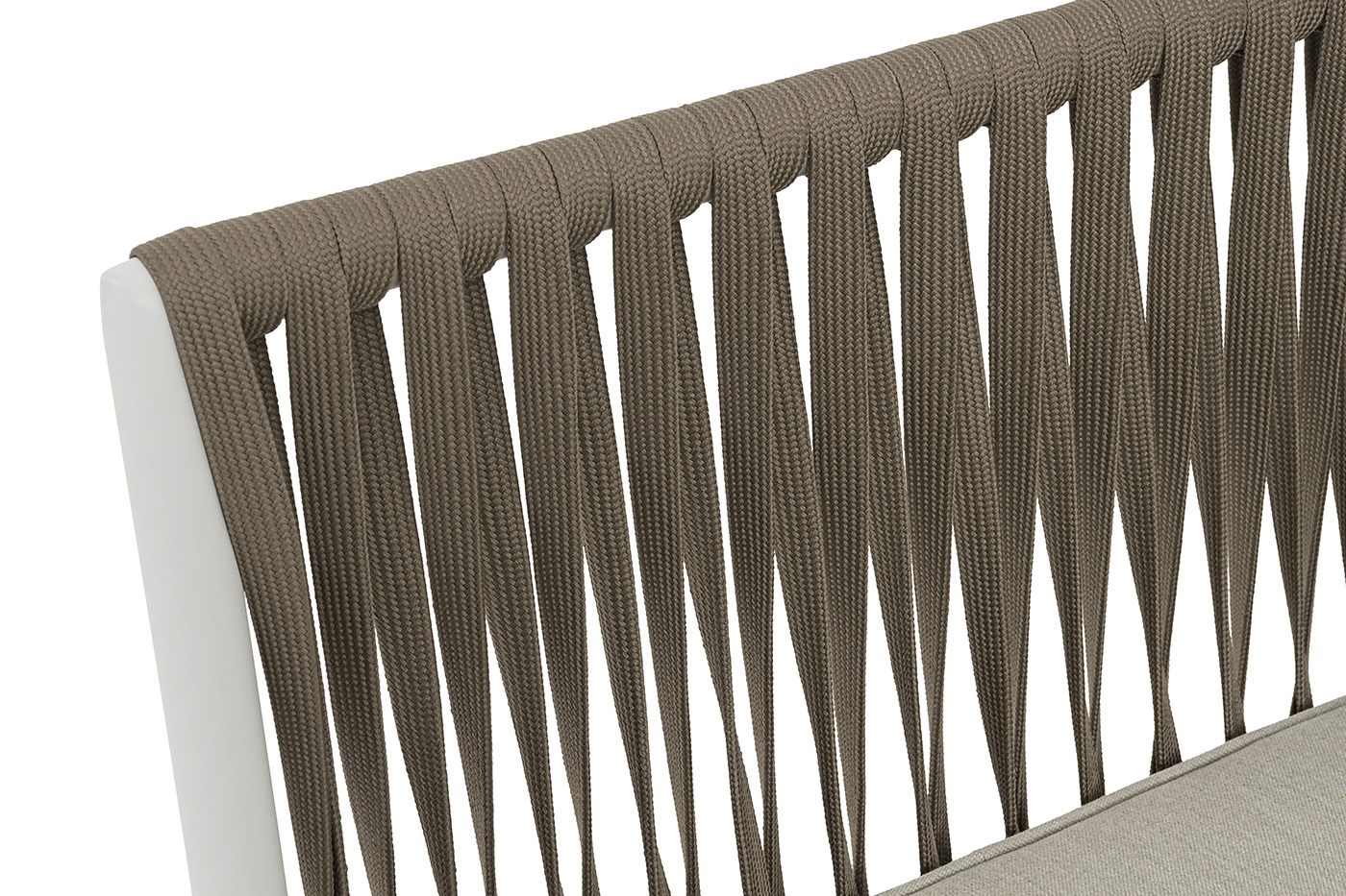 Изготовлен из качественного алюминиевого профиля, окрашенного порошковой краской в светло-серый (RAL7035) цвет. Каркас оплетен плоским роупом, шириной 23 мм, серо-коричневого цвета.