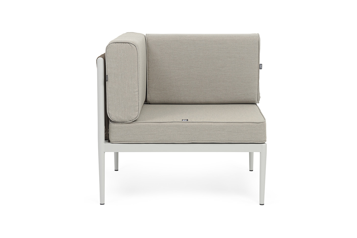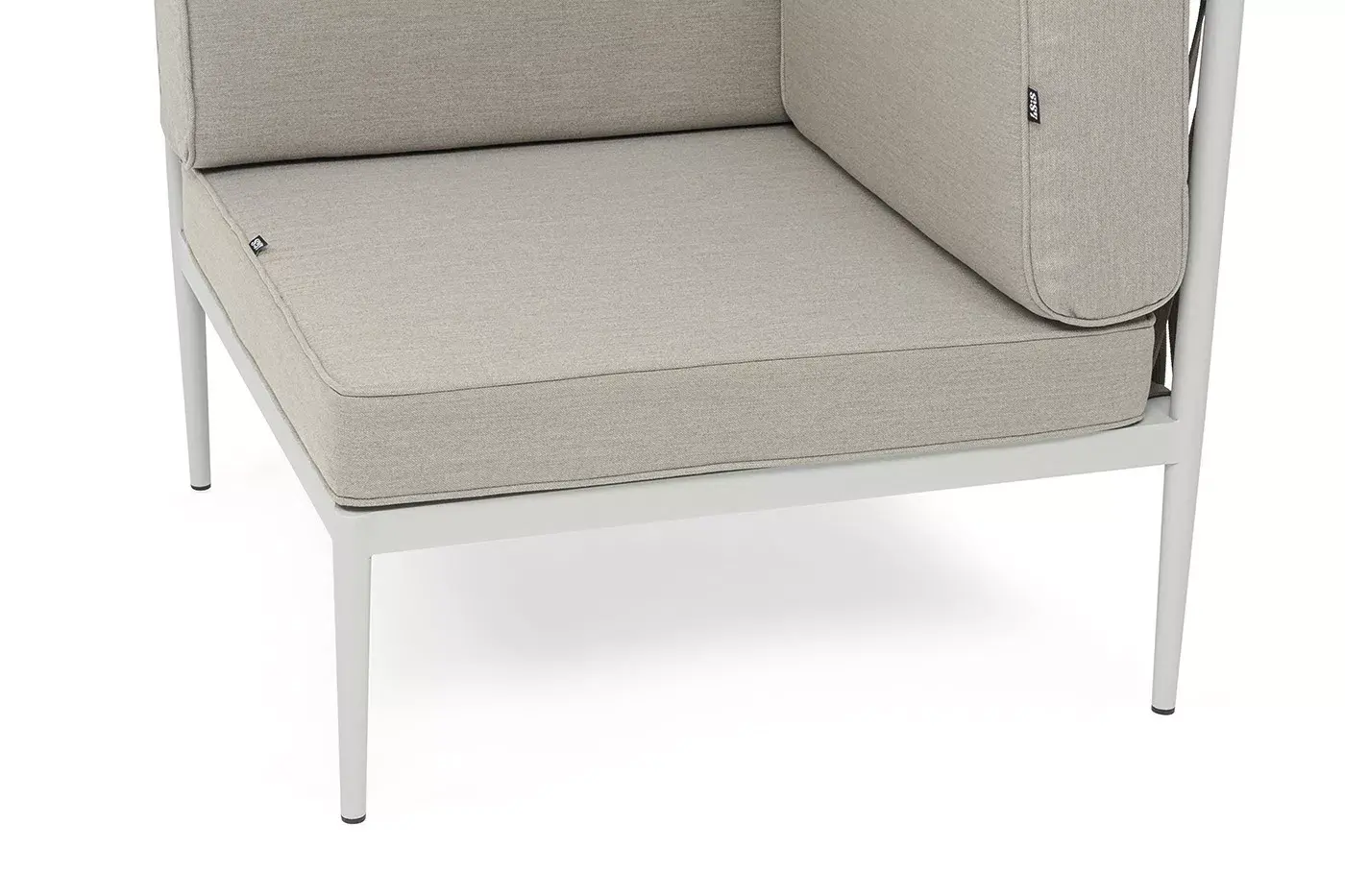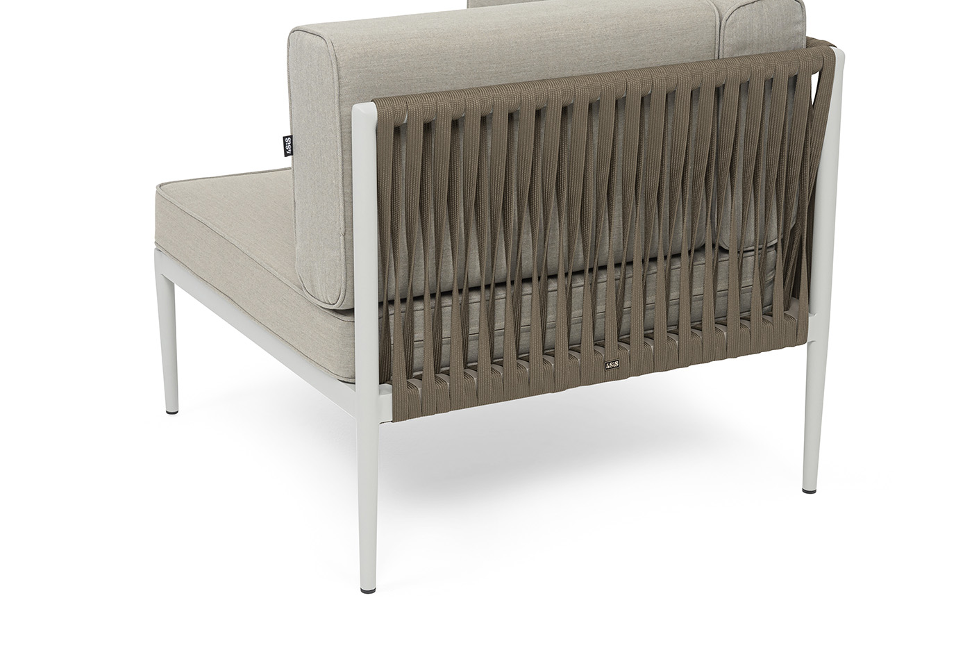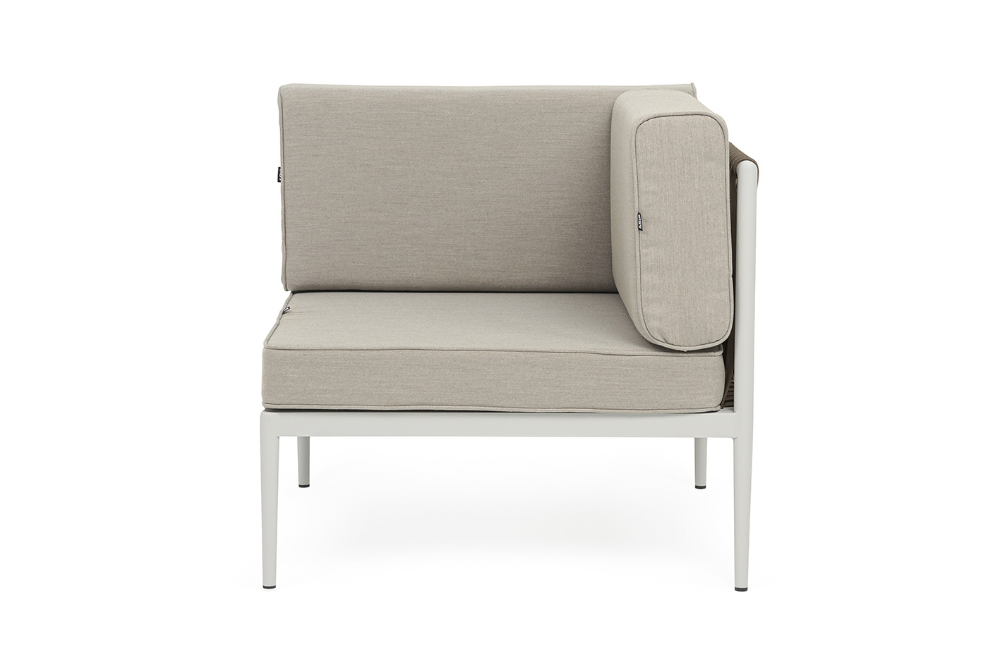 Изготовлен из качественного алюминиевого профиля, окрашенного порошковой краской в светло-серый (RAL7035) цвет. Каркас оплетен плоским роупом, шириной 23 мм, серо-коричневого цвета.