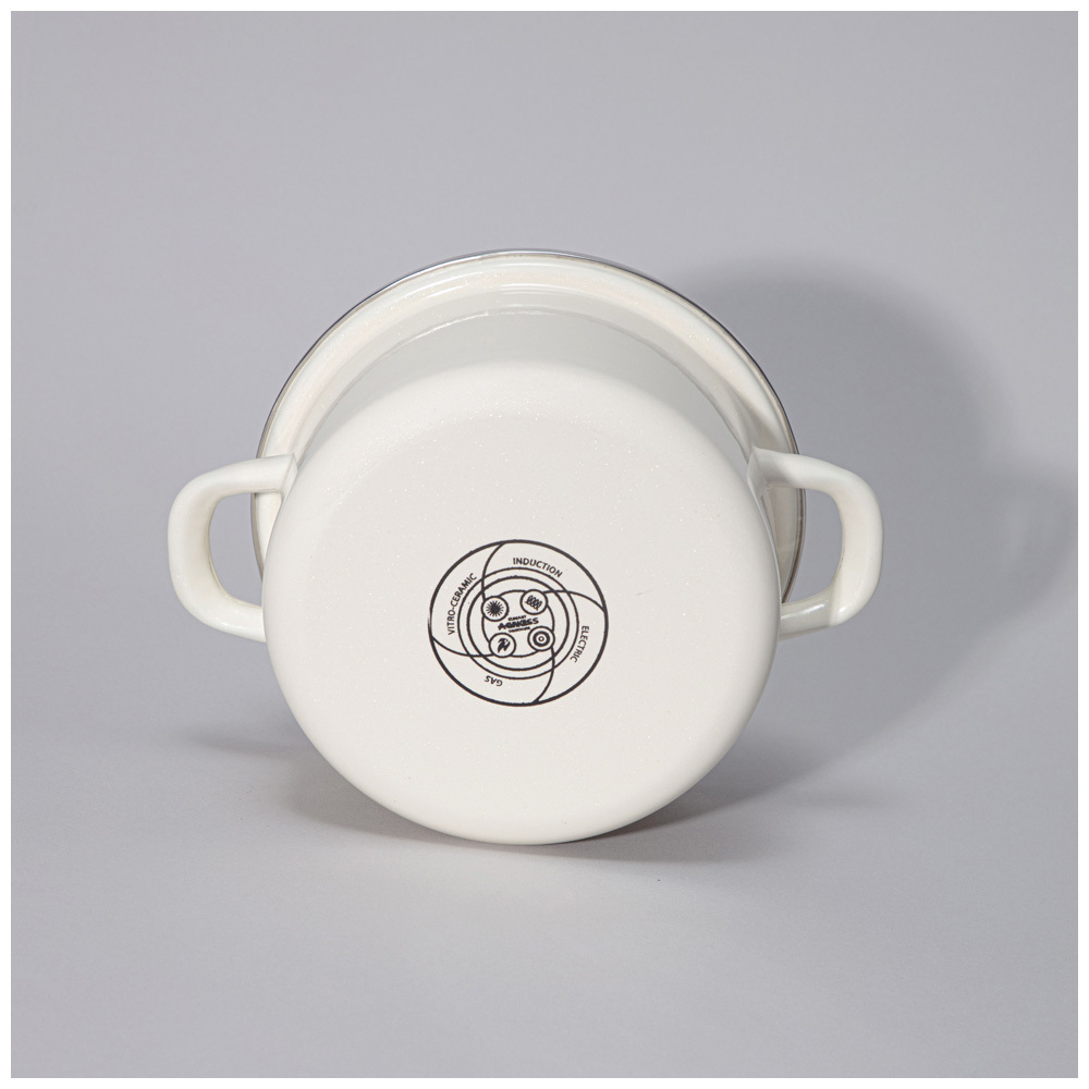 Толщина корпуса без эмалированного покрытия 0,7мм. 3-х слойное эмалированное покрытие - грунтовое, базовое и финишное покрытие с глиттером. Подходит для всех типов плит, включая индукционные. Можно мыть в посудомоечной машине.