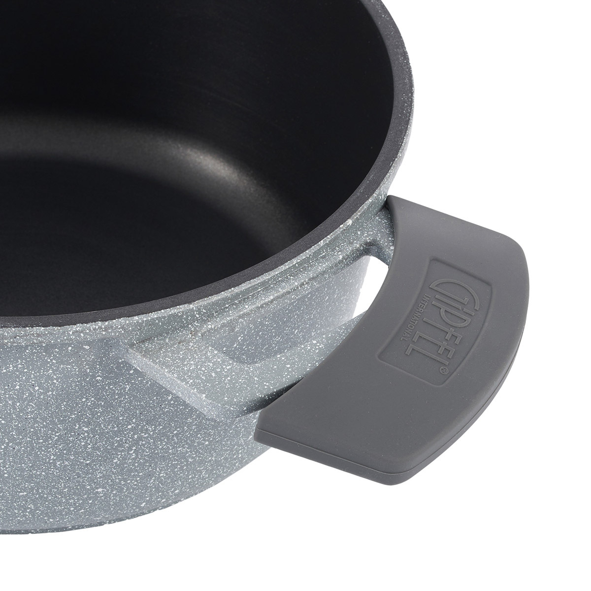 0654 Gipfel Кастрюля GREYCE 28х12,5 см/6,55л со стеклянной крышкой Материал: Литой алюминий, индукционное дно, внутри антипригарное трехслойное покрытие Ilag ultimate, снаружи покрытие серый мрамор, ручки с силиконовым покрытием