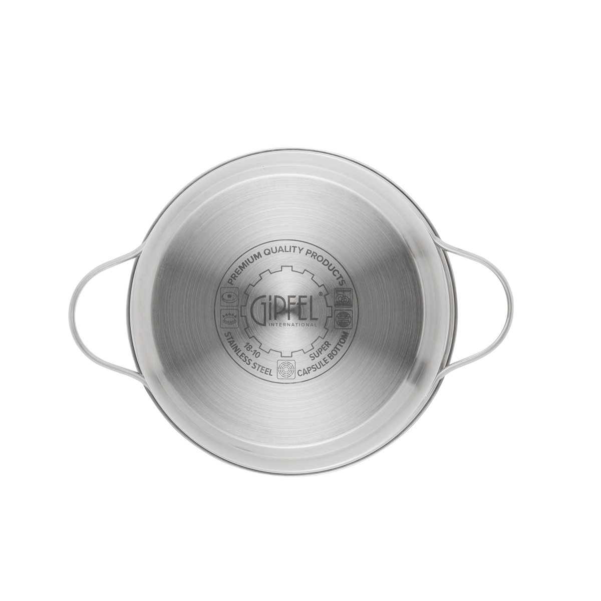 Кастрюля GIPFEL AZALEA 51060 20x9.5 см/ 2.3 л со стеклянной крышкой. Подходит для всех видов плит, включая индукционные. Материал: нержавеющая сталь 18/10. Толщина стенок 0.5 мм.