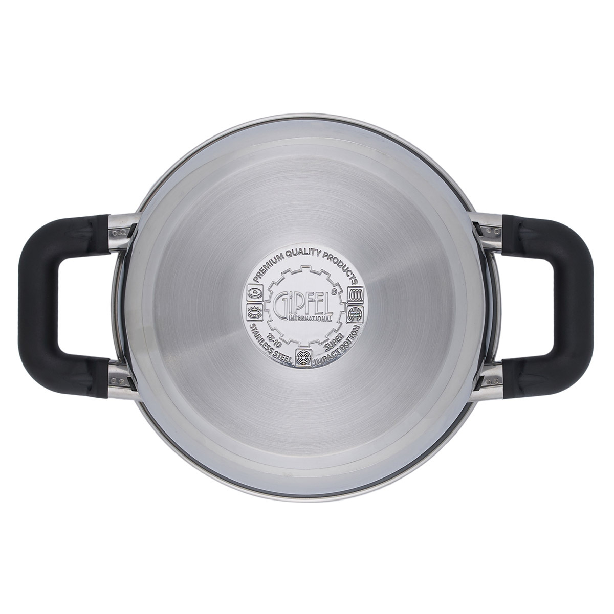 Кастрюля из нержавеющей стали Gipfel Bayern 52614 18 см/2 л. В комплекте стеклянная крышка. Толщина стенок 0,8 мм, толщина дна 5,8 мм.