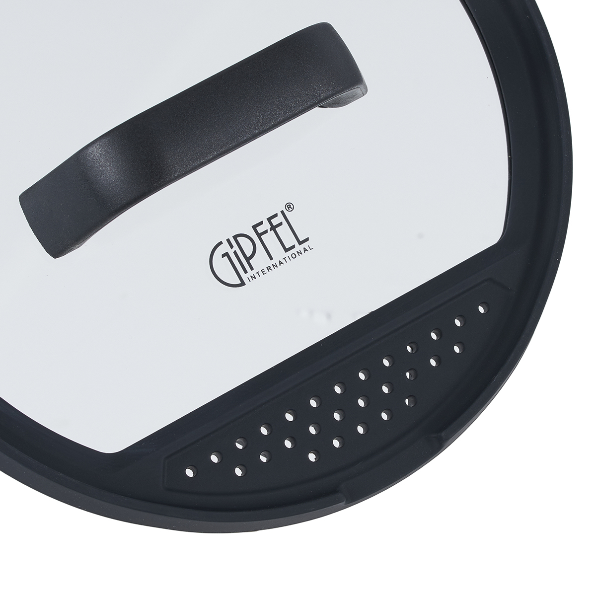 Данная модель со стеклянной крышкой с силиконовым кантом, в котором имеются отверстия для слива жидкости и выемки для ложки.