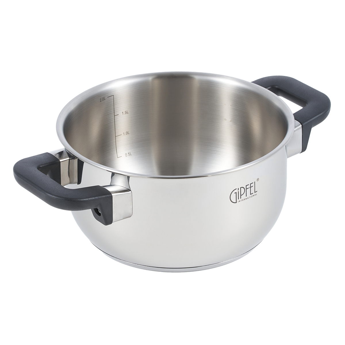 Кастрюля из нержавеющей стали Gipfel Bayern 52614 диаметром 18 см, объемом 2 л. Толщина стенок 0,8 мм, толщина дна 5,8 мм.