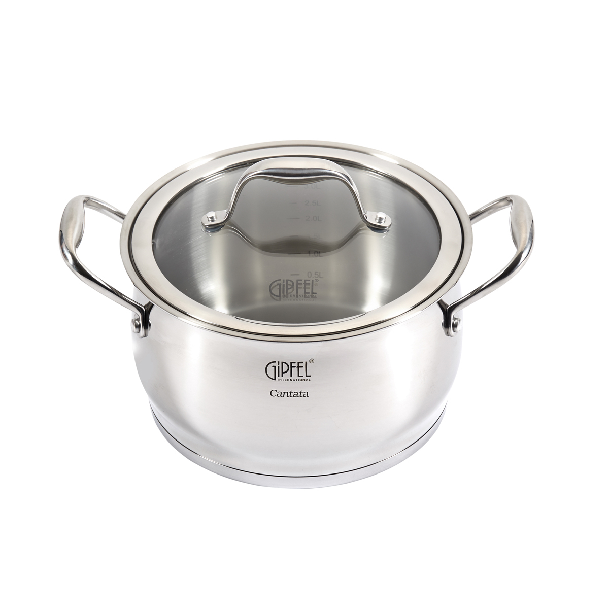 Кастрюля Gipfel Cantata 1264. Размер 20х12. Объем 3,5 л. Изготовлена из нержавеющей стали 18/10. В комплекте со стеклянной крышкой. Оснащена индукционным дном.