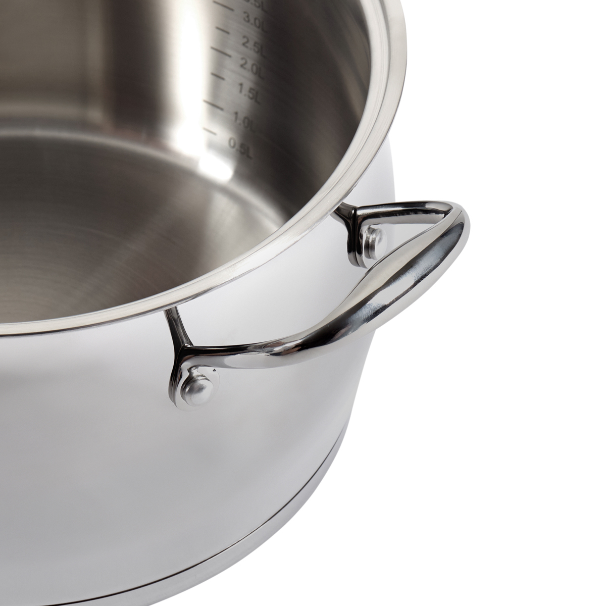 Многослойное капсульное дно обеспечивает посуде быстрый и равномерный нагрев, а глянцевая полировка наружной стороны корпуса – отличный внешний вид.