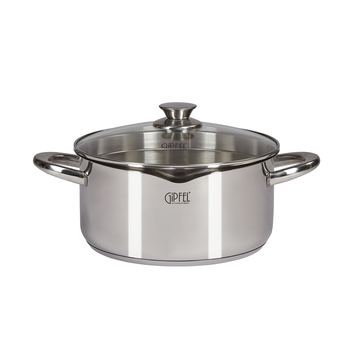 Кастрюля из нержавеющей стали Gipfel Cocktail 1249 24 см/4,5 л со стеклянной крышкой и индукционным дном.