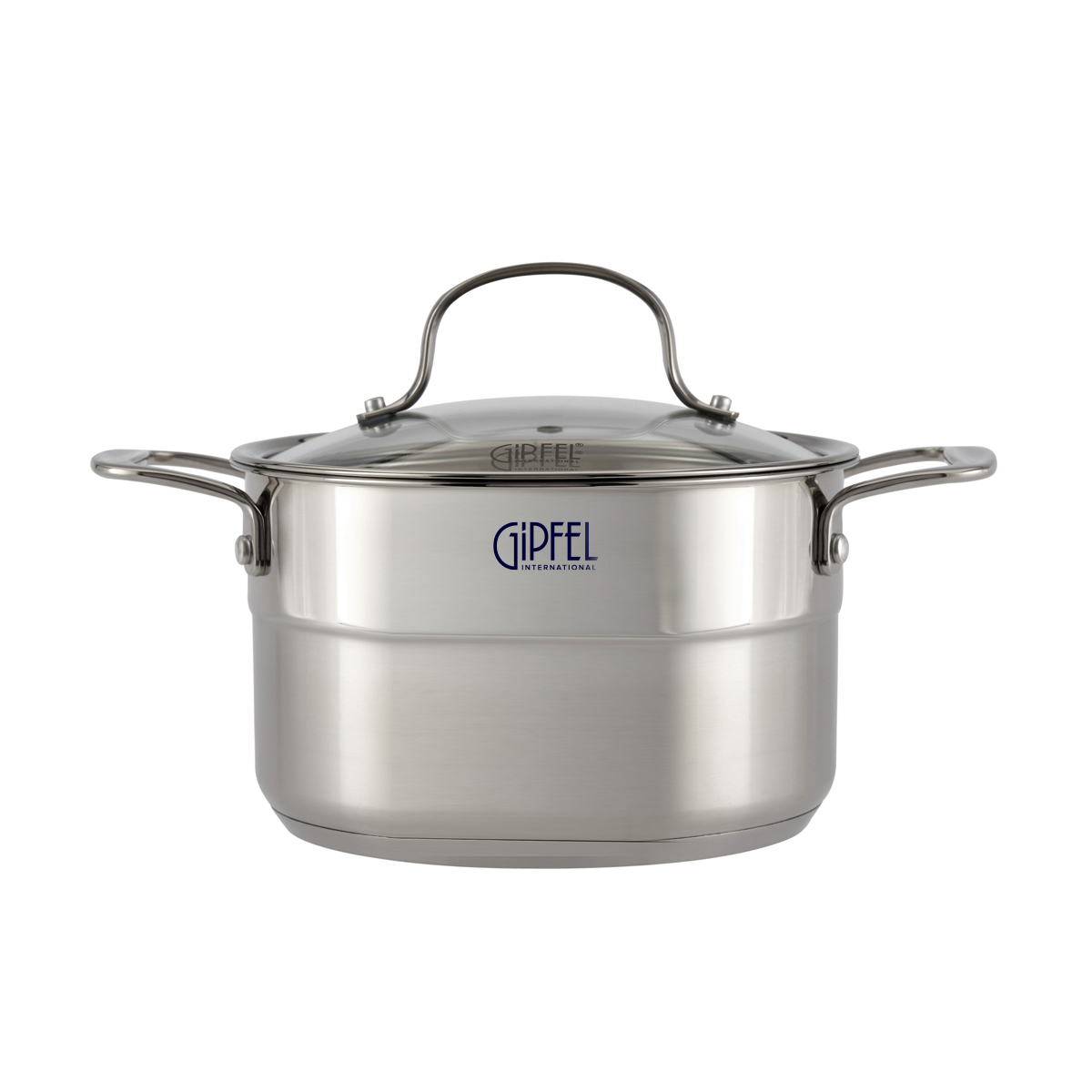 Кастрюля Gipfel 1274. Объем 3,5 л. Изготовлена из нержавеющей стали 18/10. В комплекте со стеклянной крышкой. Капсульное дно обеспечивает равномерный нагрев кастрюли. Подходит для всех плит, включая индукционные. Упакована в фирменную коробку Gipfel.
