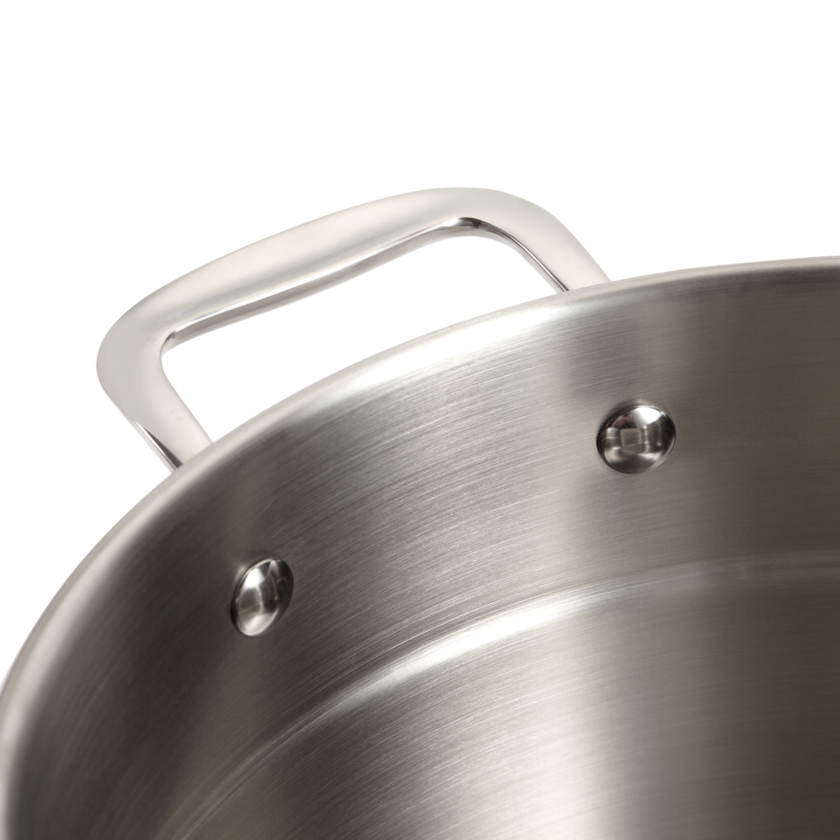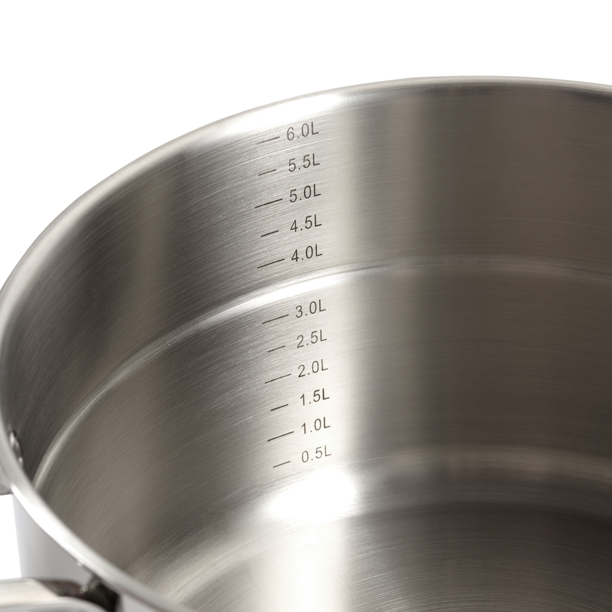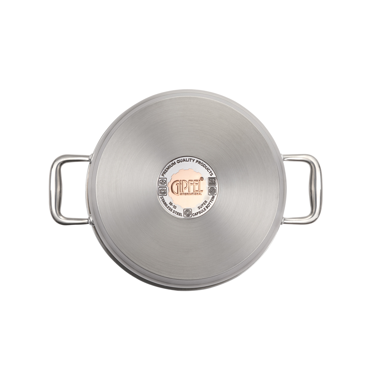Серия GALA представляет собой серию классических кастрюль и ковшей из высококачественной нержавеющей стали марки 18/10, выполненных в классической металлической расцветке. Посуда данной серии оснащена индукционным дном, эргономичными ручками, которые не нагреваются при готовке, а также стеклянной крышкой с отверстием для выпуска пара. Объем данной кастрюли составляет 6 литра. 3-слойное капсулированное дно