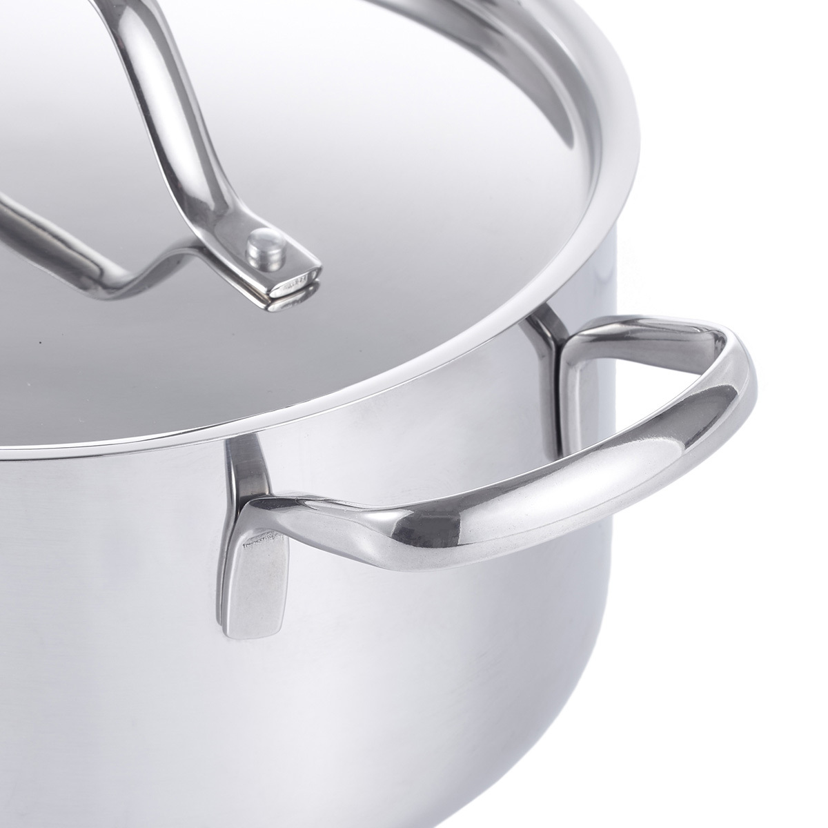Кастрюля изготовлена из нержавеющей стали «18/10», что гарантирует ее прочность и долговечность, а также гигиеничность посуды — отсутствие пор в данном материале исключает концентрацию вредных веществ. Эта кастрюля отлично подойдет для хранения еды после приготовления - вкус и полезные свойства пищи нисколько не пострадают.