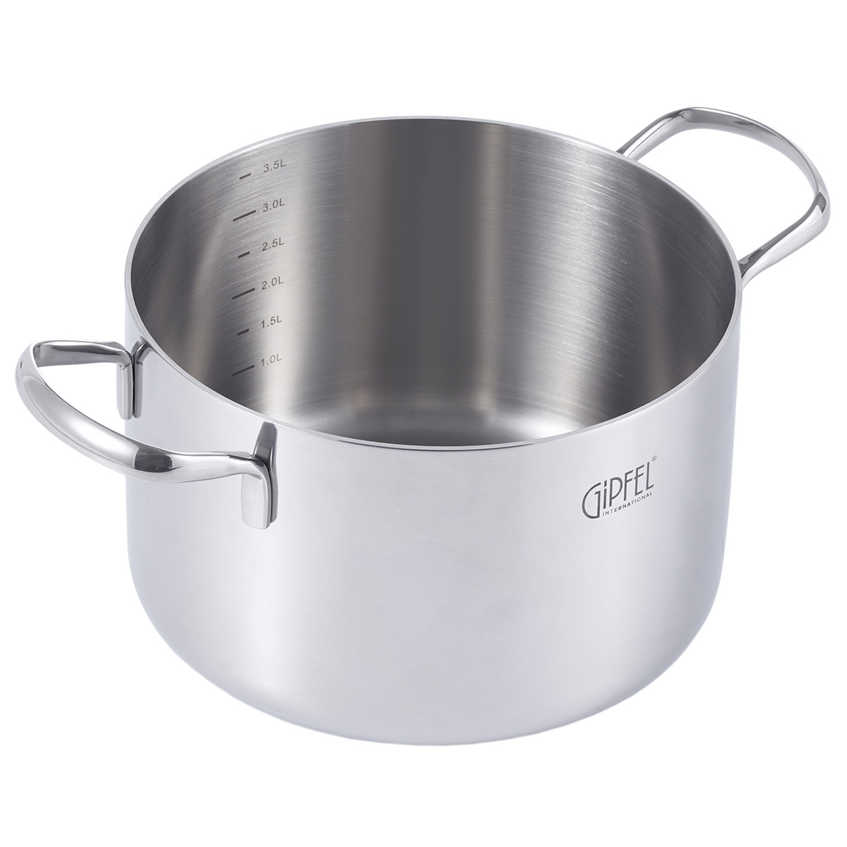 Кастрюля из нержавеющей стали Gipfel Galaxy 51970. Объем данной модели 3,8 л, диаметр 20 см, высота стенок 12,5 см.