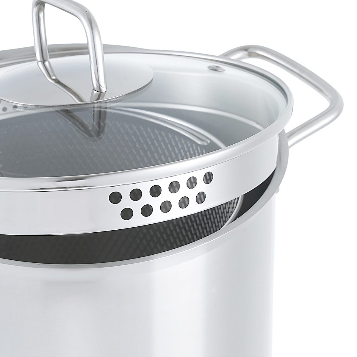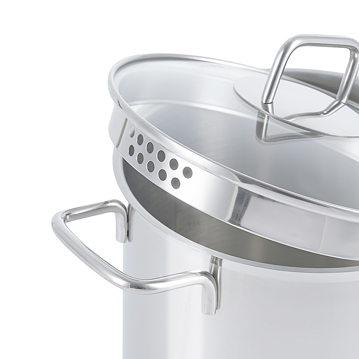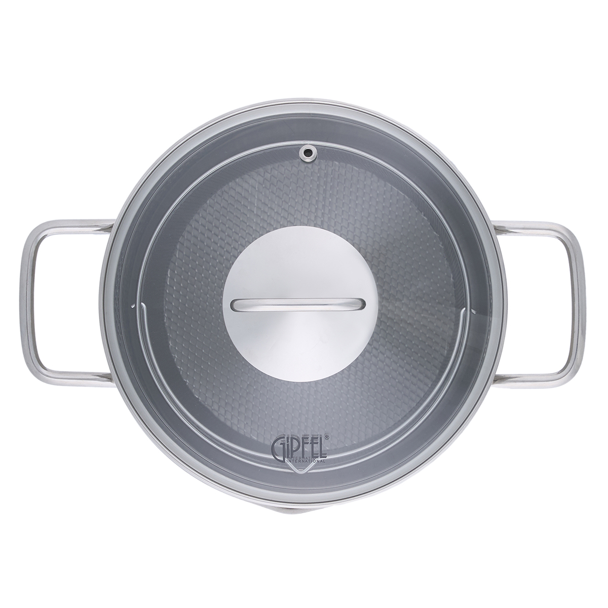 В случае необходимости кастрюлю можно использовать и без сетки. Кастрюля Gipfel Itum в комплекте с прозрачной крышкой из стекла с отверстиями для слива и для выхода пара.