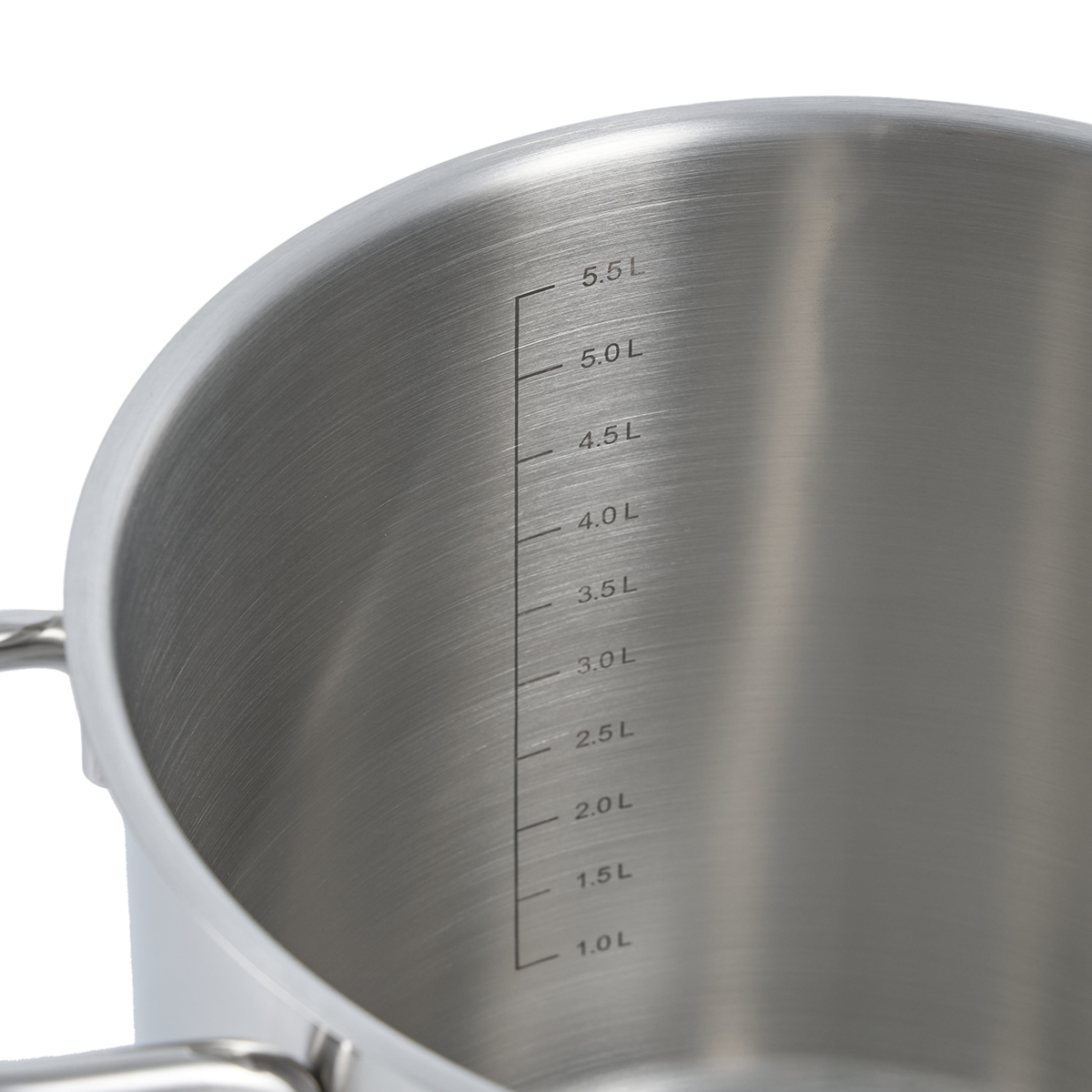 Внутри кастрюли нанесена мерная шкала от 1 до 5,5 л, с помощью которой удобно отмерить нужное количество воды и следить за ее уровнем.