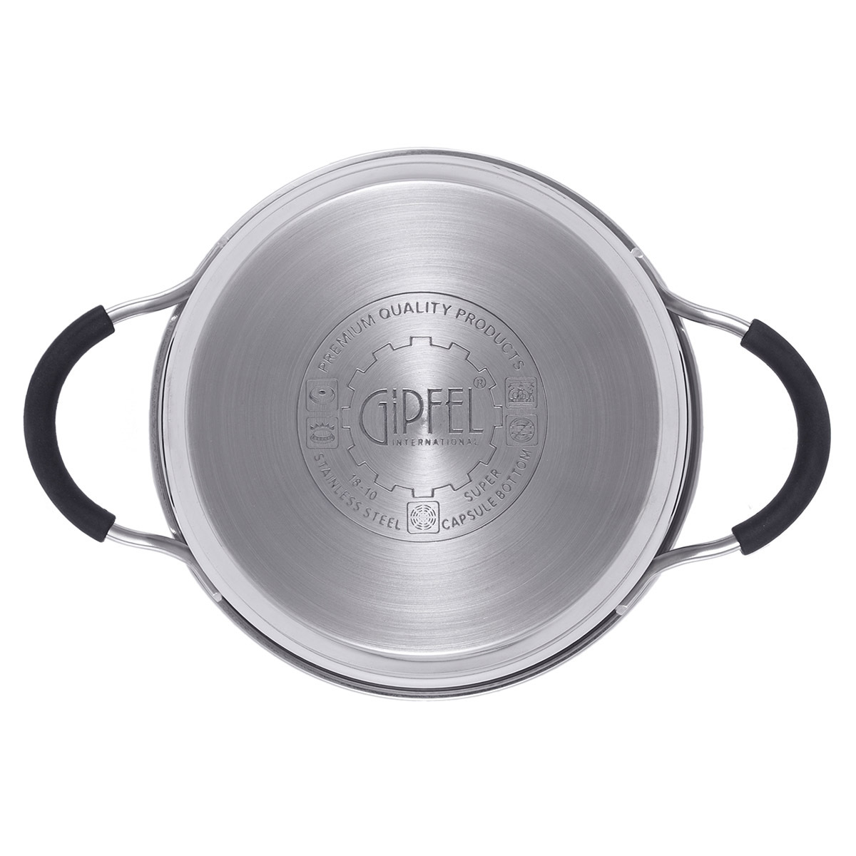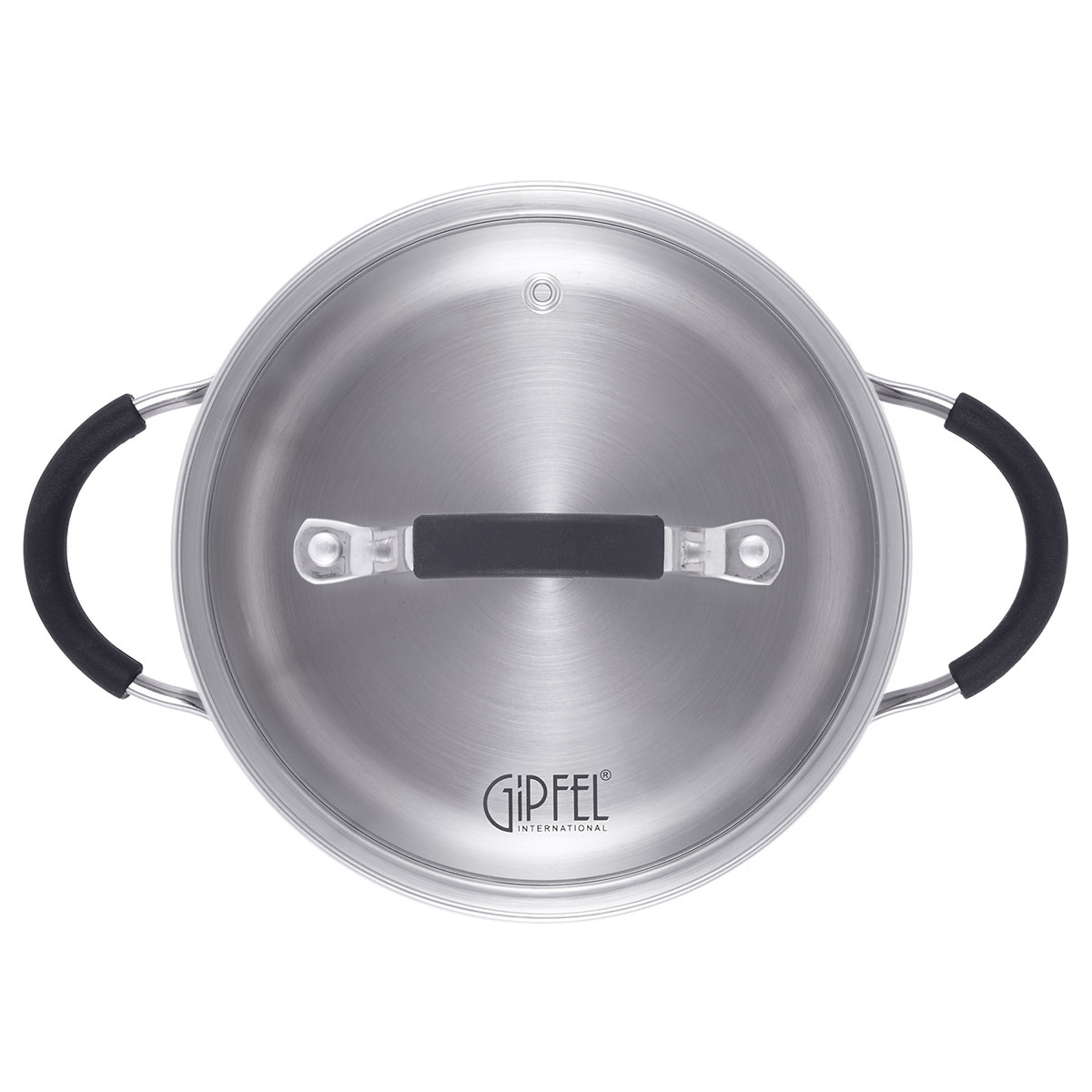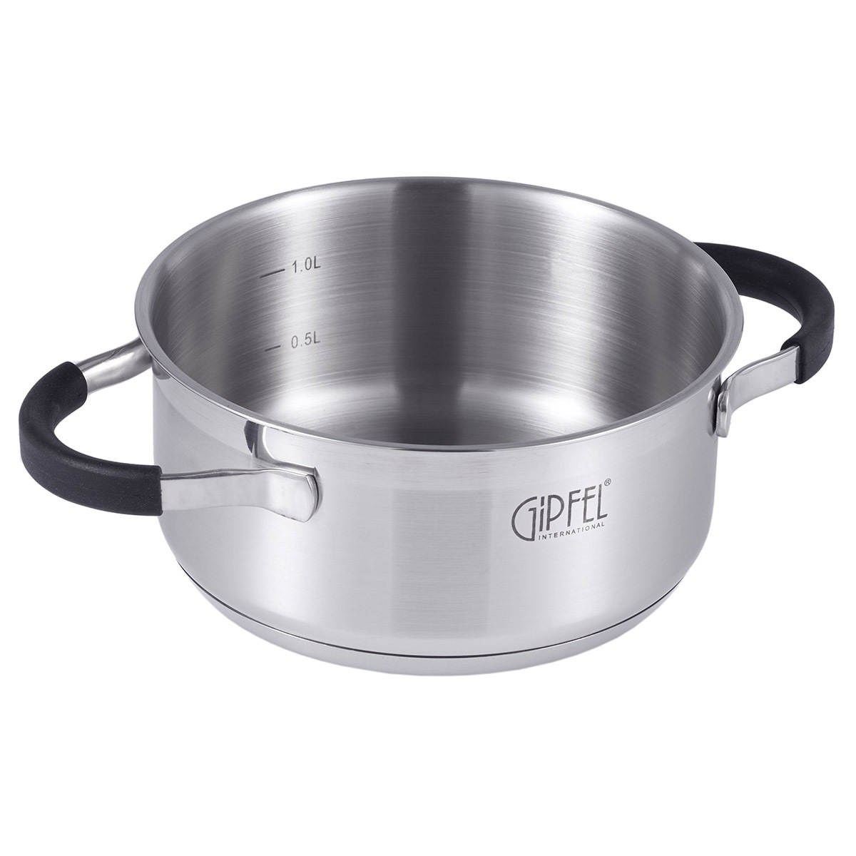 Кастрюля METROPOLE Gipfel 1732 объемом 1,5 л из нержавеющей стали 18/10 со стеклянной крышкой с ручками с силиконовыми накладками