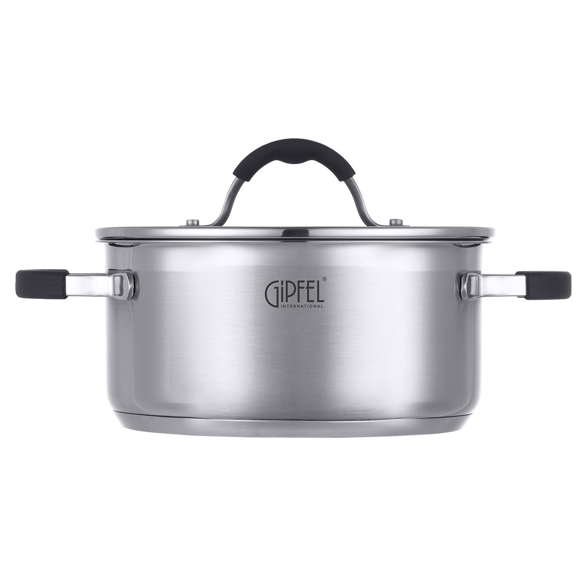 Кастрюля из нержавеющей стали Gipfel Metropole 1734 20 см/2,5 л со стеклянной крышкой.