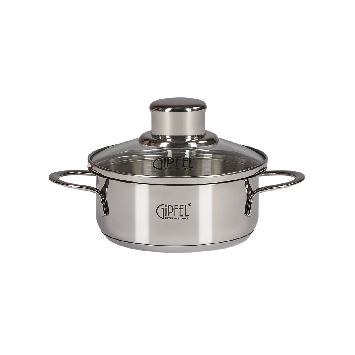 Кастрюля из нержавеющей стали Gipfel Mini 1201 размером 12х5,5 см, объемом 0,4 л со стеклянной крышкой и индукционным дном. Материал: нержавеющая сталь 18/10.