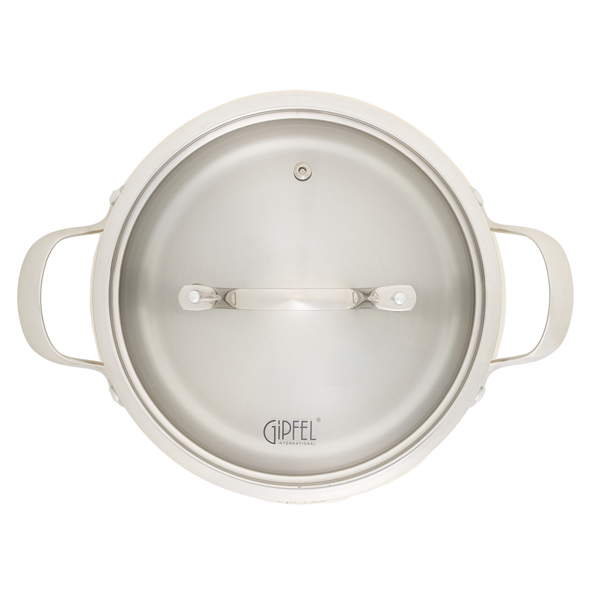 Кастрюля из нержавеющей стали Gipfel Novella 52291 20 см/4 л. Изготовлена из нержавеющей стали 18/10. Толщина 0,8 мм. В комплекте стеклянная крышка. Цвет: бежевый.