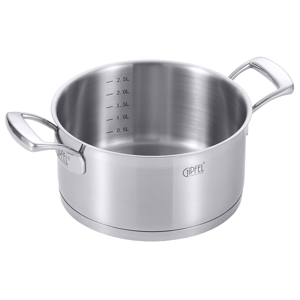 Кастрюля из нержавеющей стали Gipfel Prestige 1234. Диаметр 20 см. Объем 2,7 л. В комплекте стеклянная крышка.