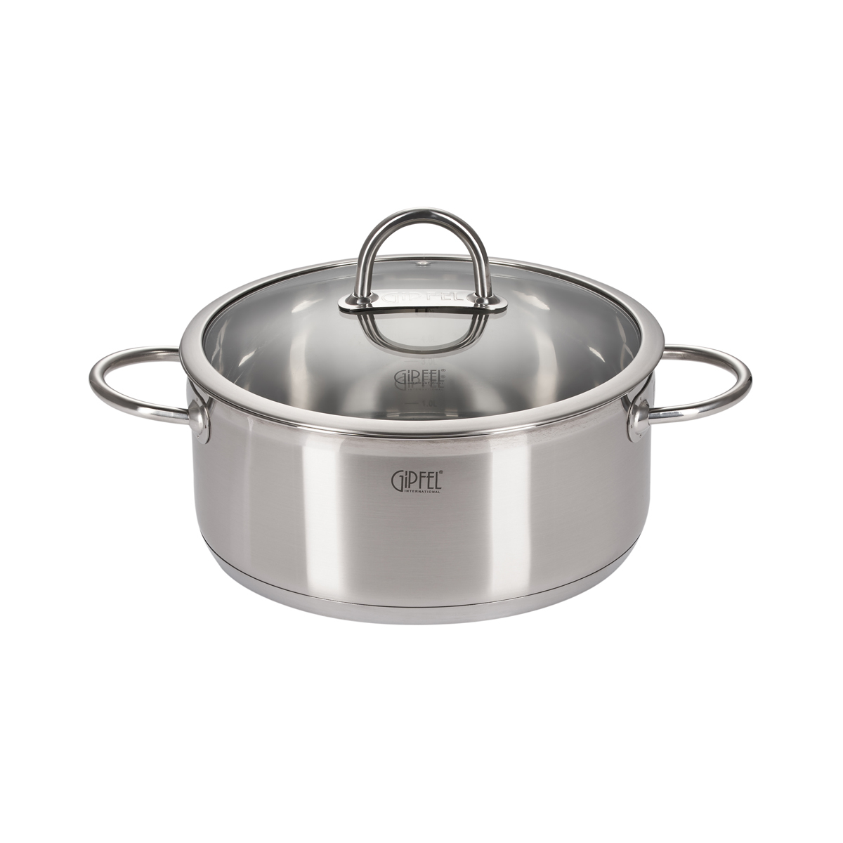 Кастрюля из нержавеющей стали Gipfel Signo 1295. Диаметр 28 см. Объем 6,6 л. На внутренней стенке нанесена мерная шкала. Высота кастрюли 12 см. Кастрюля изготовлена из нержавеющей стали 18/10. Толщина стенок 0,8 мм, толщина дна 6,5 мм. В комплекте со стеклянной крышкой. Подходит для всех видов плит, включая индукционные. Упакована в фирменную коробку Gipfel.