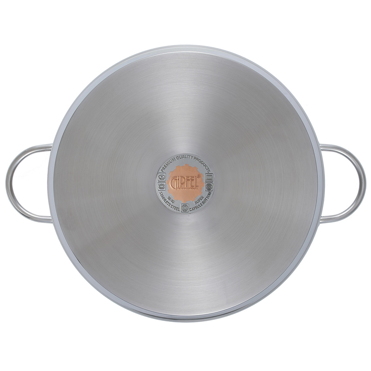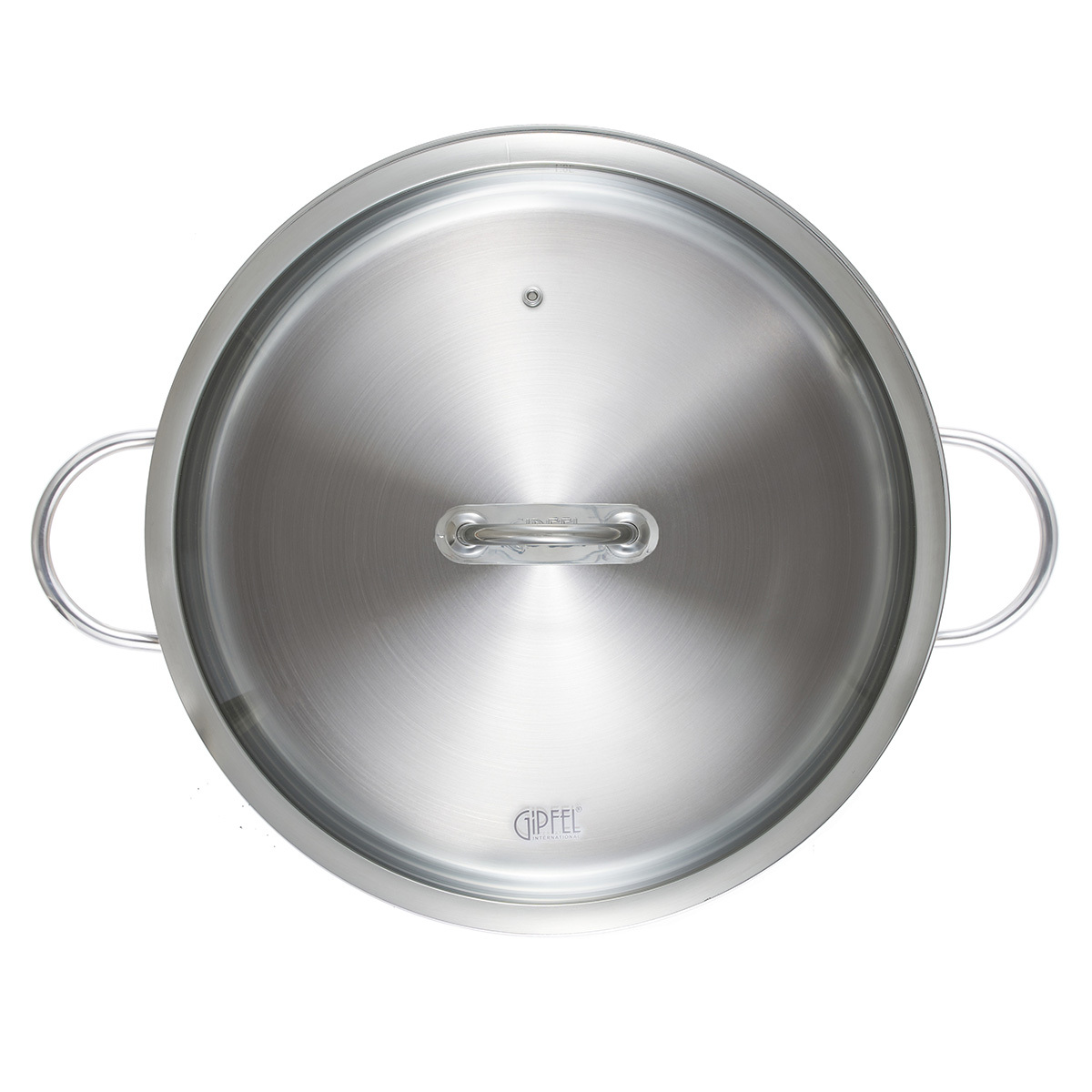 Кастрюля из нержавеющей стали Gipfel Signo 1297. Диаметр 36 см. Объем 13 л. На внутренней стенке нанесена мерная шкала. Высота кастрюли 14 см. Кастрюля изготовлена из нержавеющей стали 18/10. Толщина стенок 0,8 мм, толщина дна 6,5 мм. В комплекте со стеклянной крышкой. Подходит для всех видов плит, включая индукционные. Упакована в фирменную коробку Gipfel.