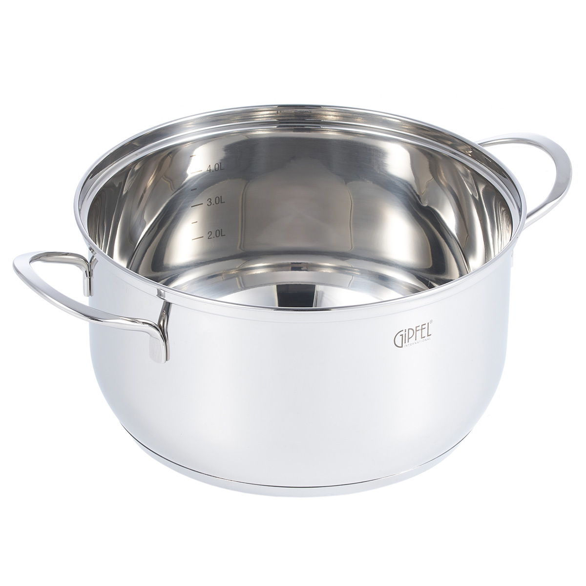 Кастрюля Gipfel Sofia 2319. Размер 24x13 см, объем 5,1л. В комплекте со стеклянной крышкой. Толщина стенок 0,5 мм, толщина дна 3 мм.