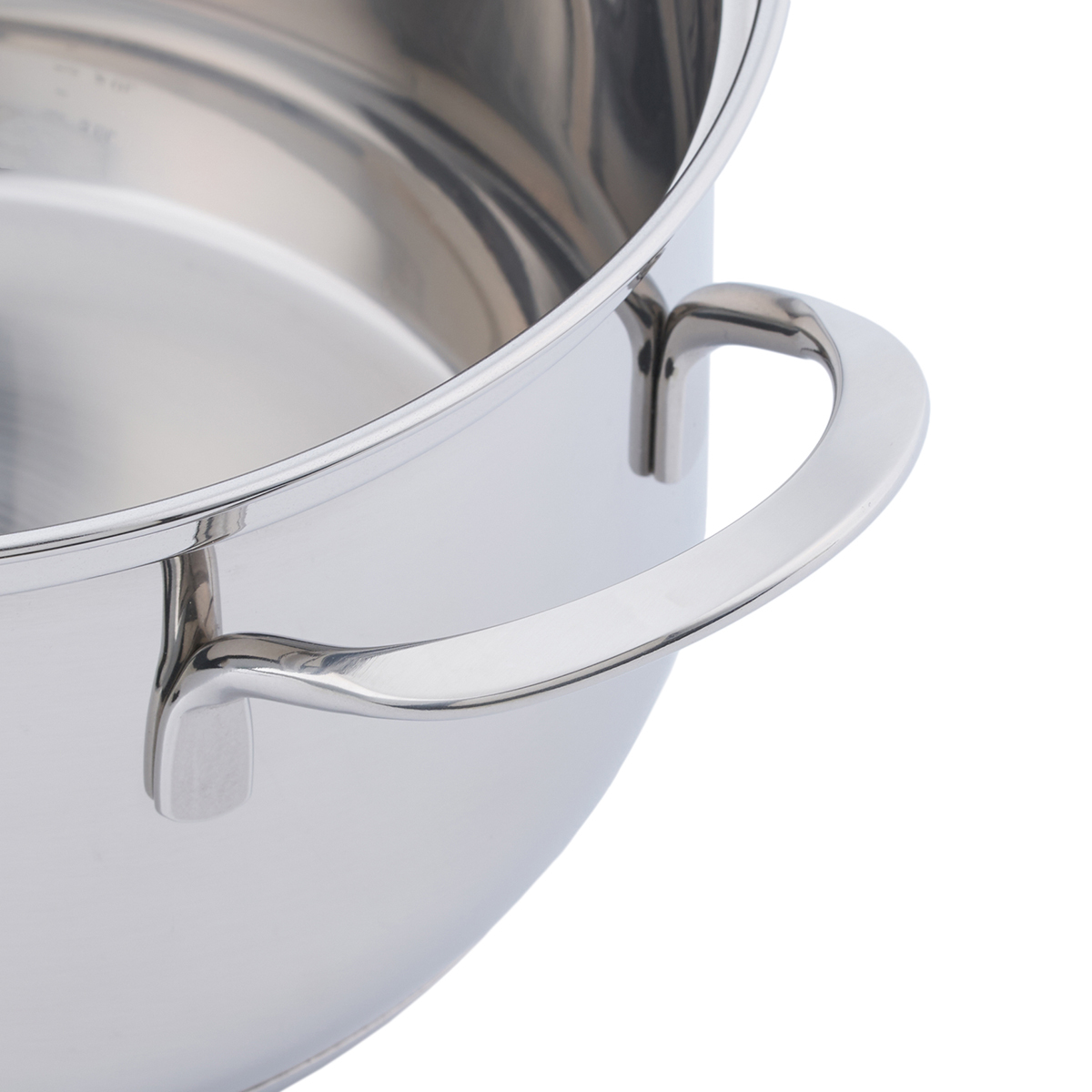 Внутри кастрюли нанесена мерная шкала, с помощью которой удобно отмерить нужное количество воды и следить за ее уровнем.