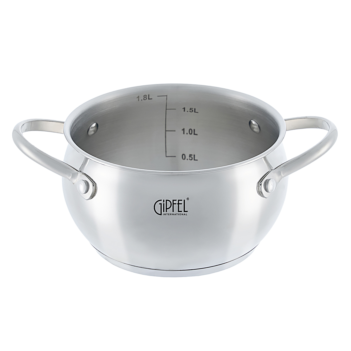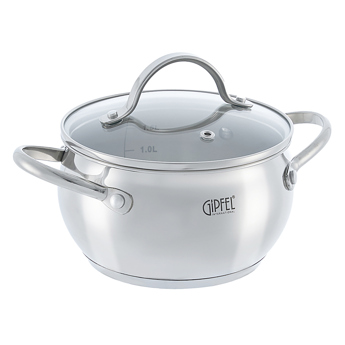 Кастрюля Gipfel 1292 TERZA 1.8л из нержавеющей стали 18/10 со стеклянной крышкой и индукционным дном.