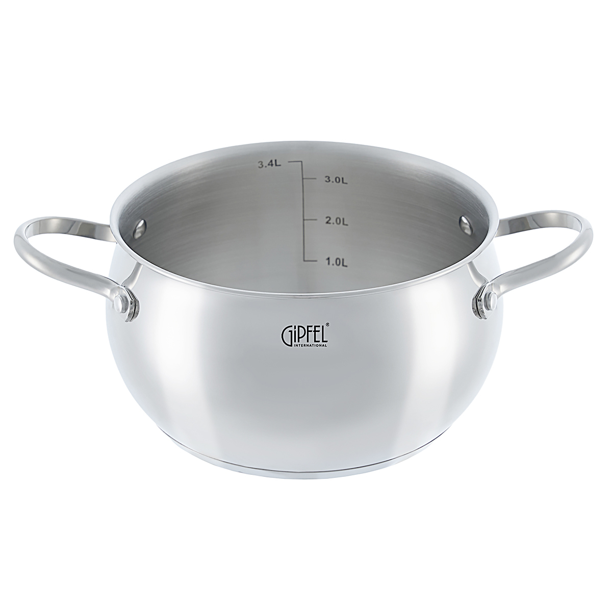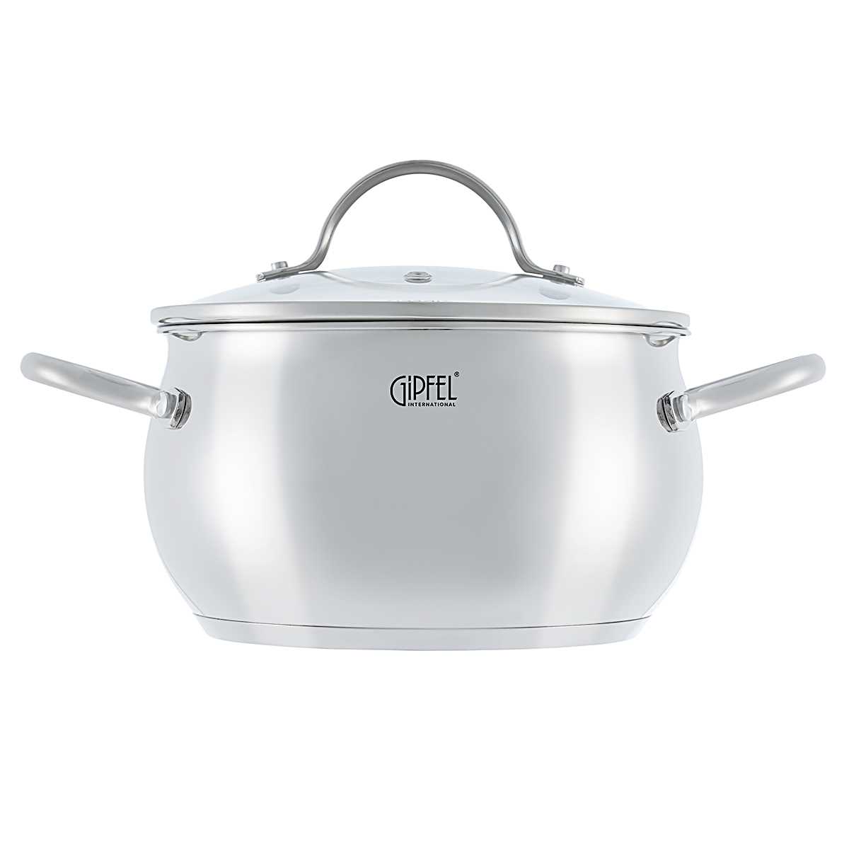 Кастрюля Gipfel Terza 1293 3,4 л из нержавеющей стали 18/10 со стеклянной крышкой.