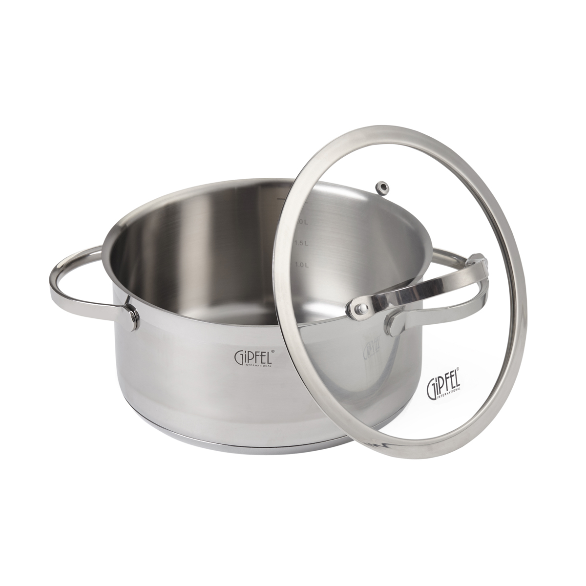 Кастрюля из нержавеющей стали Gipfel Victory 1368. Диаметр 20 см, объем 2,6 л. Изготовлена из нержавеющей стали 18/10. В комплекте со стеклянной крышкой.
