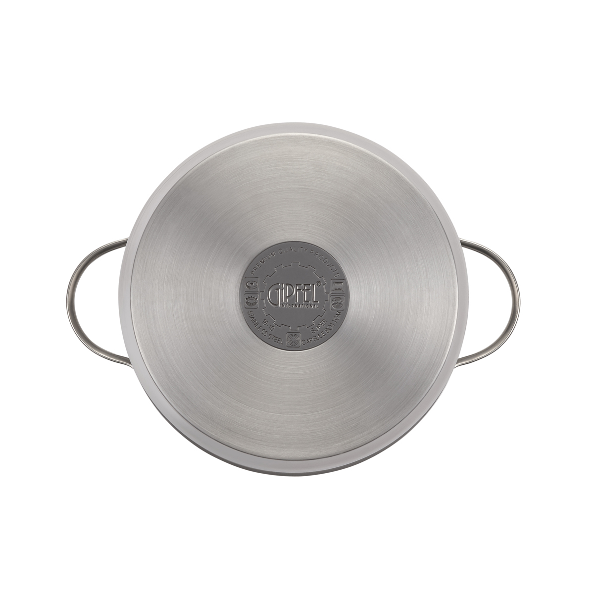 У изделия индукционное капсульное дно: при приготовлении пища нагревается равномерно и не подгорает, стенки не ломаются и не деформируются при использовании на различных видах плит.
