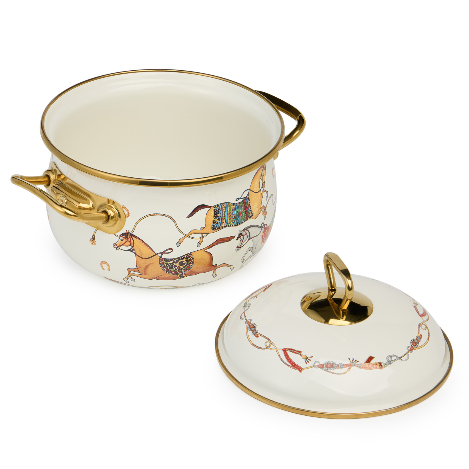 ТМ LEFARD в международном сотрудничестве с турецким производителем представляет серию «PASSAGE». Движения лошадей эластичные, элегантные с активным импульсом. Ритм движения завораживает. Декор с богатым орнаментом и золотой окантовкой. Посуда для приготовления серии «PASSAGE» продолжает линейку посуды для сервировки стола из тонкостенного фарфора.