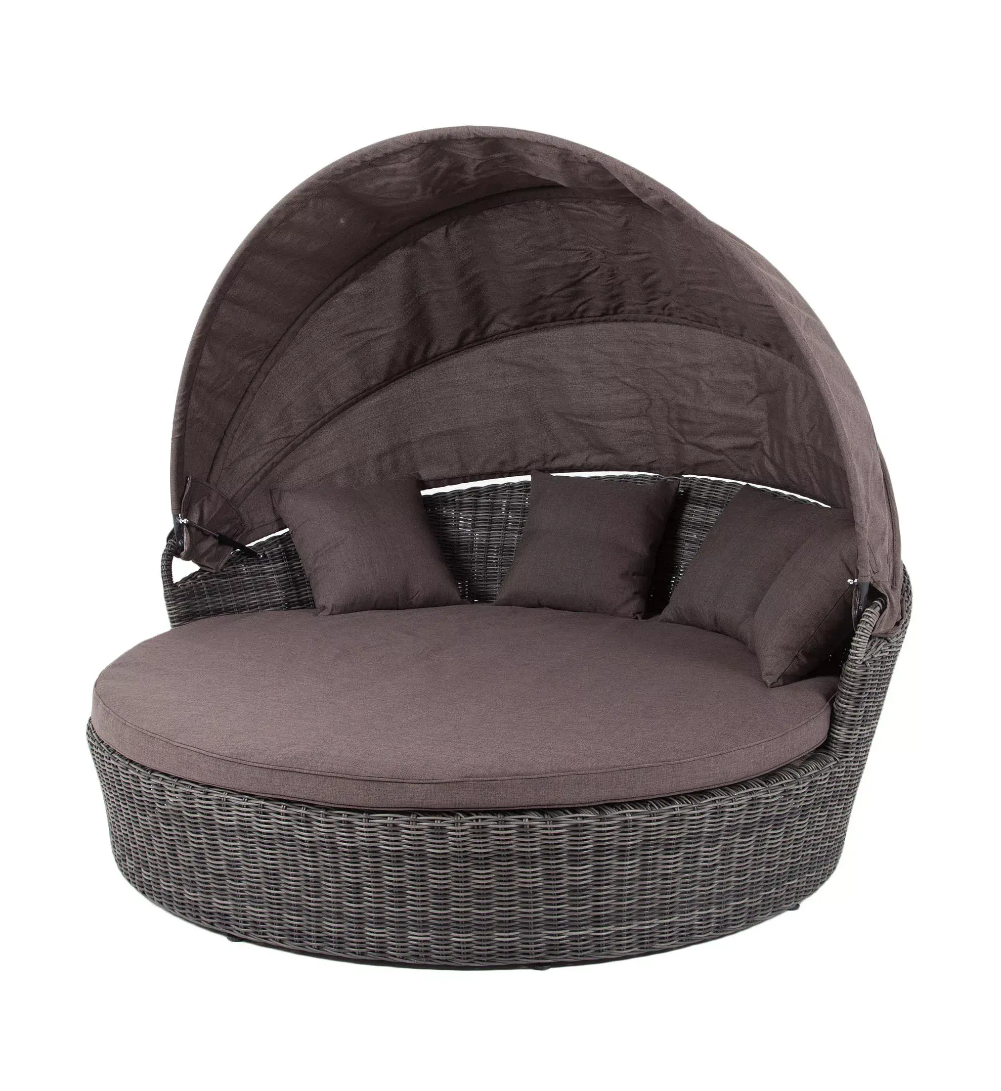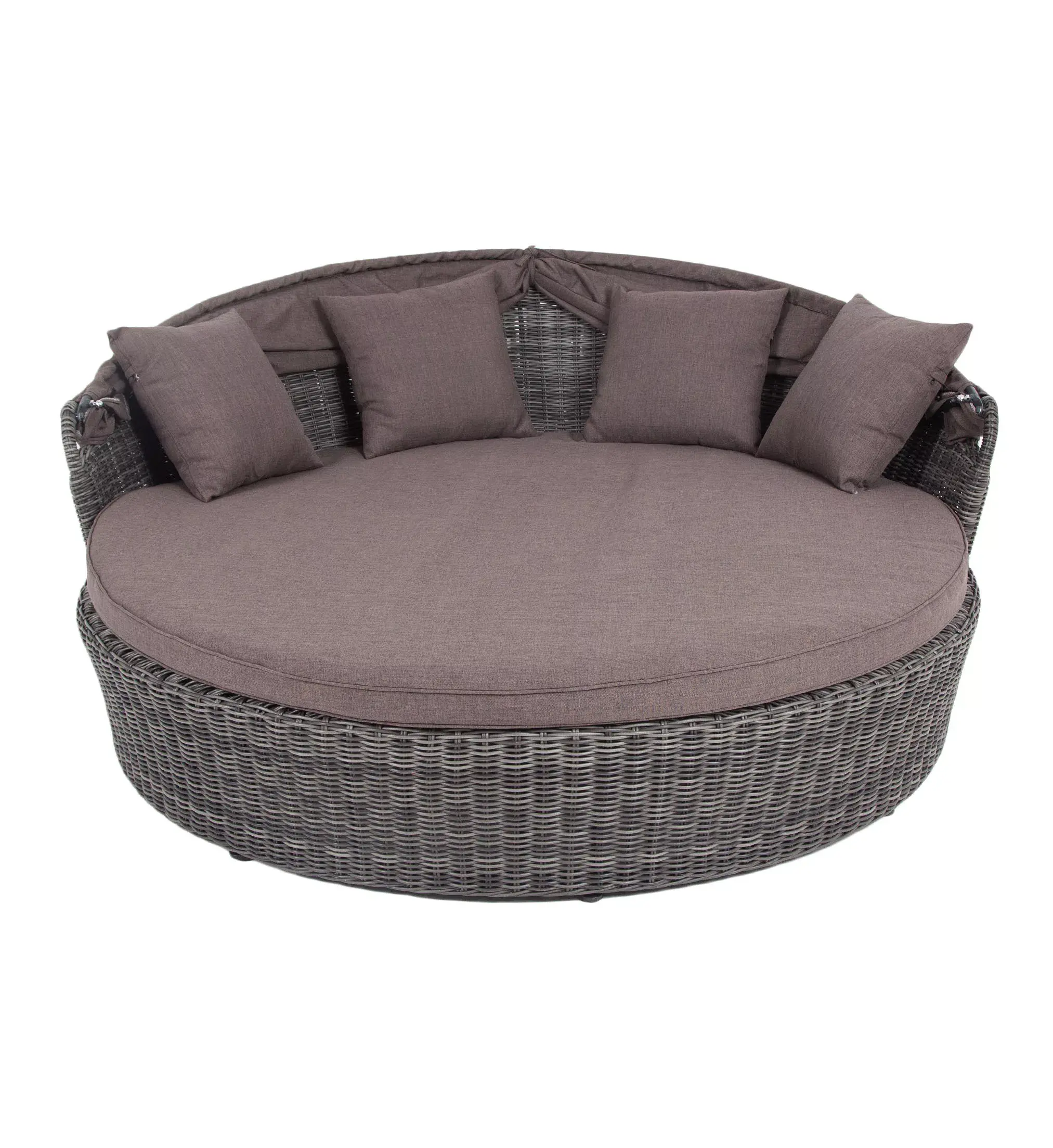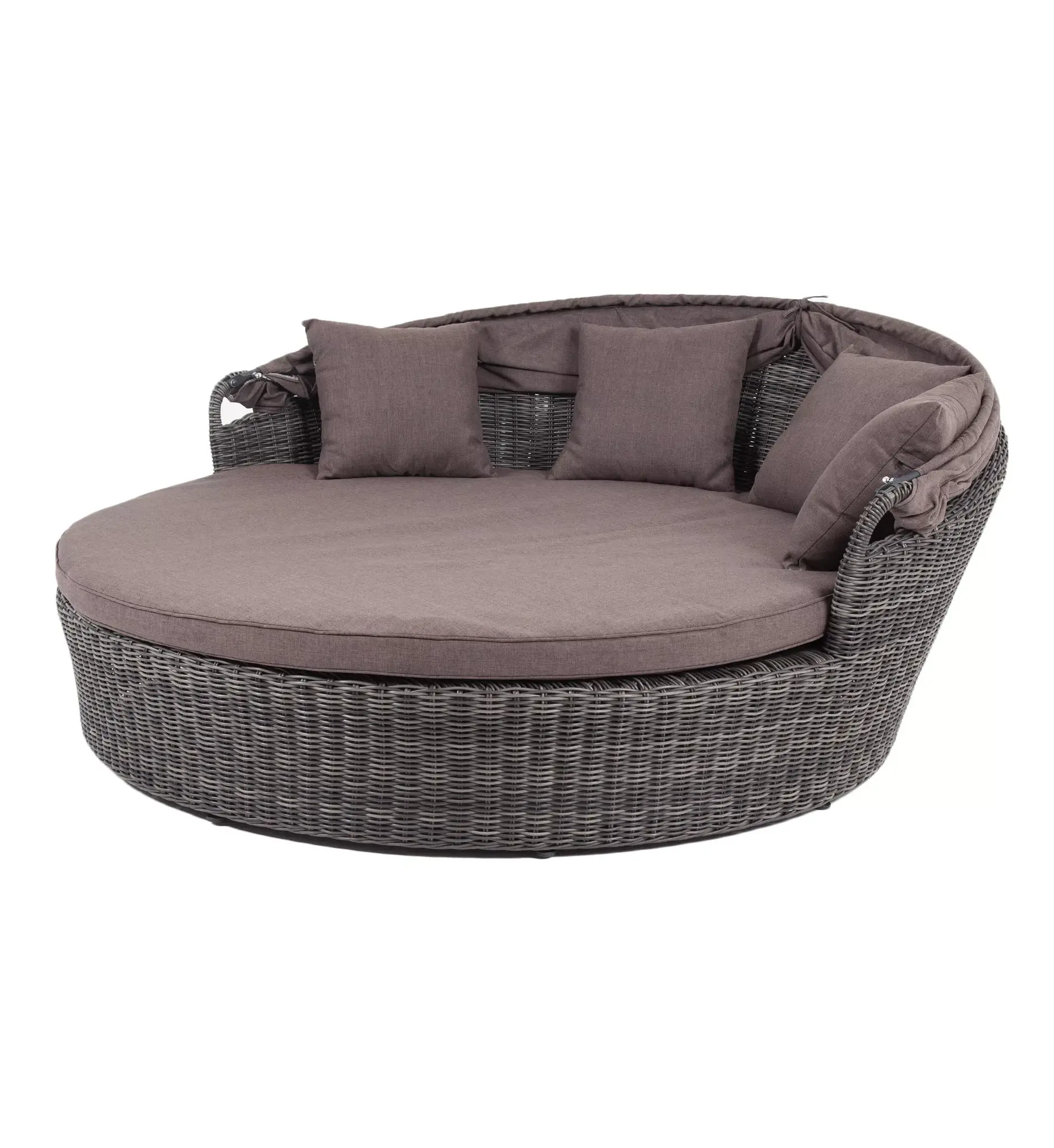 «Стильяно» - кровать из искусственного ротанга круглой формы. Она идеально подойдет для использования на открытом воздухе, в том числе и возле бассейна. Имеет графитовый оттенок.