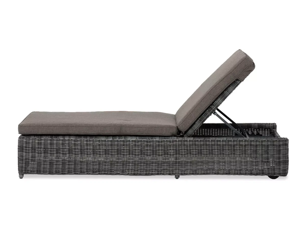 «Рим» плетеный шезлонг из искусственного ротанга графитового оттенка прекрасно дополнит пространство для отдыха на открытом воздухе.