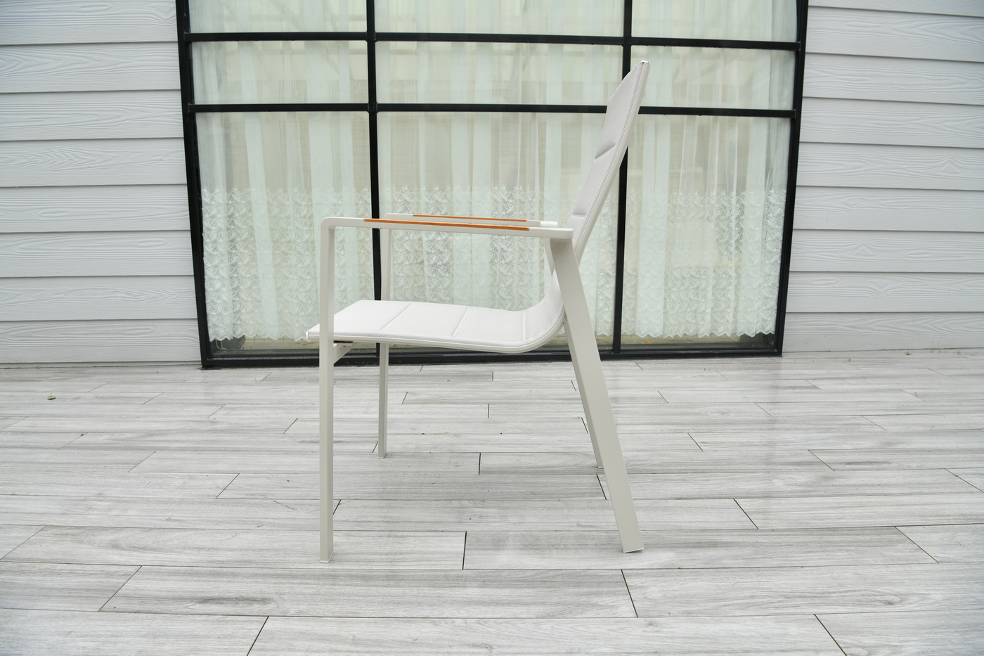 Подлокотники украшены вставками из тикового дерева.