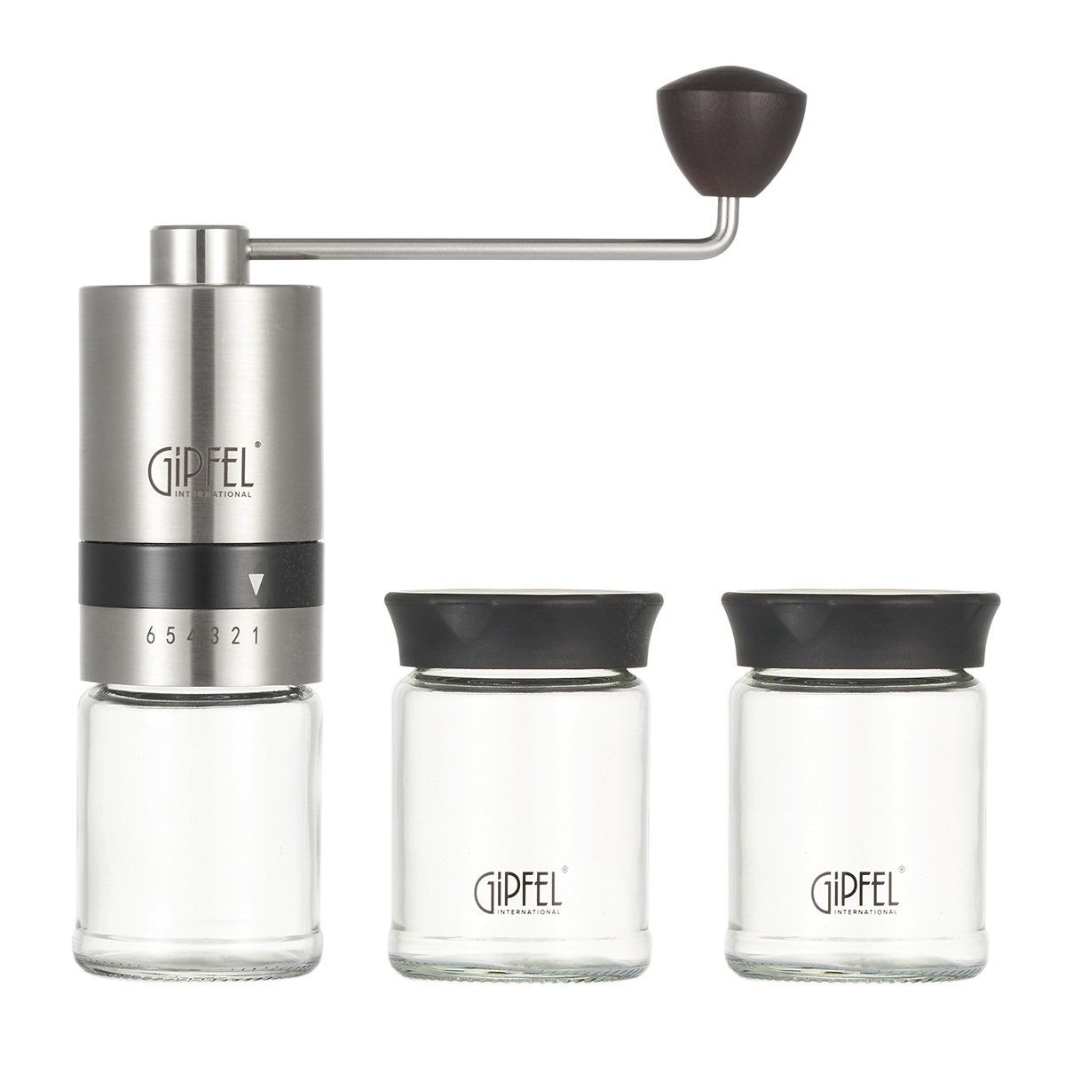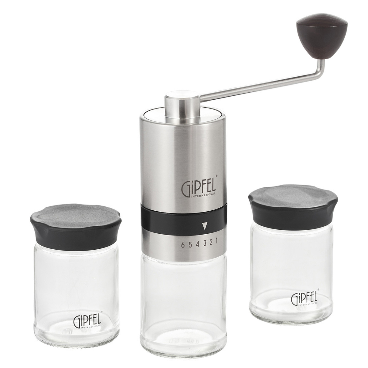 Кофемолка Gipfel Essence 51906 механическая со стальными жерновами и двумя баночками для хранения. Размер 16х5.5х19 см. Объем 100 мл.