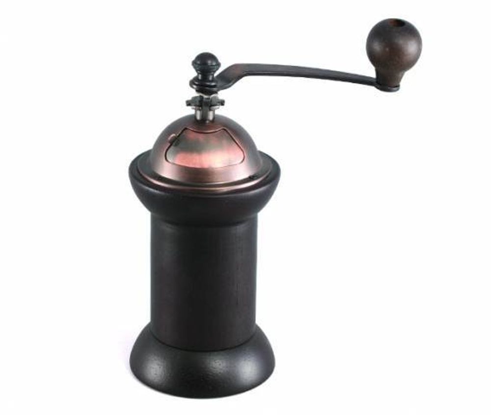 Ручная жерновая кофемолка с воронкой закрытого типа.
