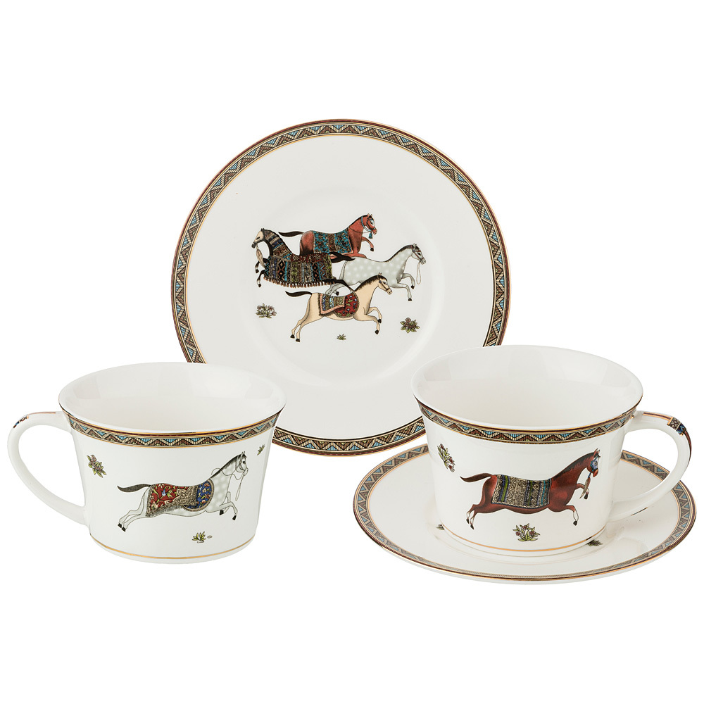 ТМ Lefard коллекция Passage мужественная и стильная. Движения лошадей эластичные, элегантные с активным импульсом. Каждая диагональная пара ног поднимается и ставится в очень точном ритме и с подвисанием. Шея лошади приподнята и округлена, затылок находится в высшей точке, голова опущена почти вертикально. Этот ритм завораживает. Посуда для сервировки стола из тонкостенного упрочненного фарфора неповторима. Прямые формы. Декор с богатым орнаментом и золотой окантовкой. Посуда прошла сертификацию. Безопасна для контакта с пищевыми продуктами. Отличный подарок. Не использовать в микроволновой печи, не рекомендуется мыть в посудомоечной машине.