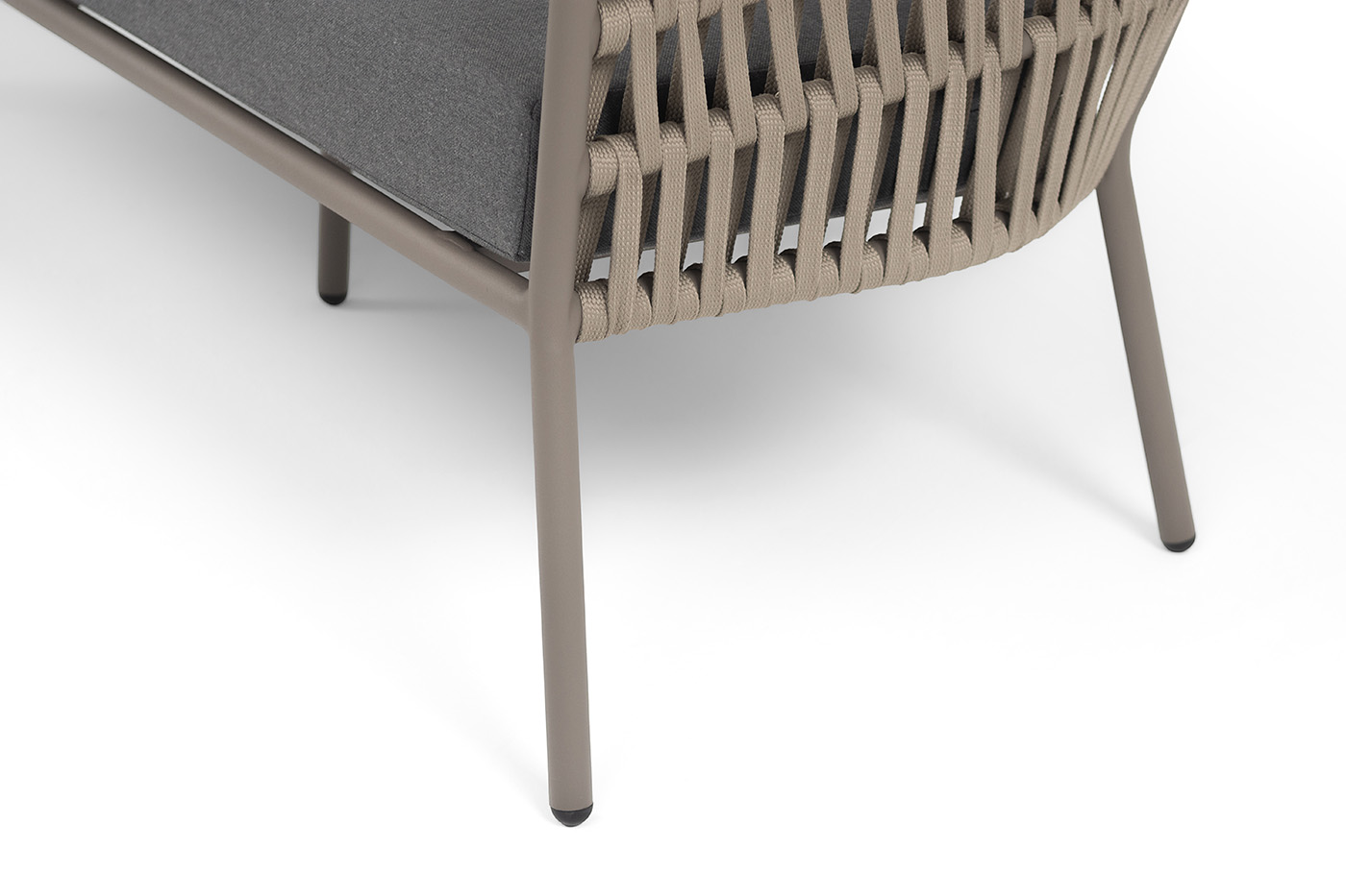 Повышенный комфорт обеспечивают мягкие подушки с практичными съёмными чехлами. Влагоотталкивающая ткань, устойчивая к выгоранию под воздействием ультрафиолета и неблагоприятным атмосферным явлениям, позволит вам наслаждаться отдыхом на свежем воздухе, не беспокоясь о сохранности обивки.