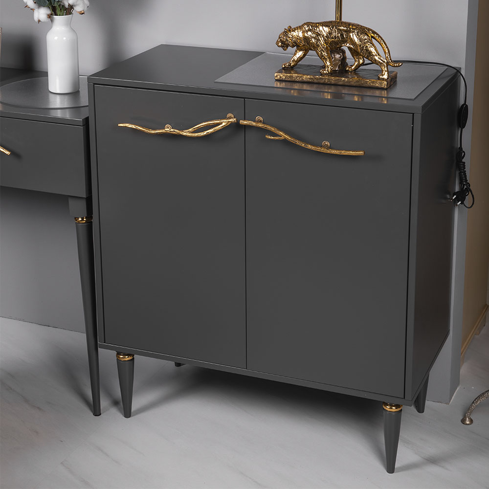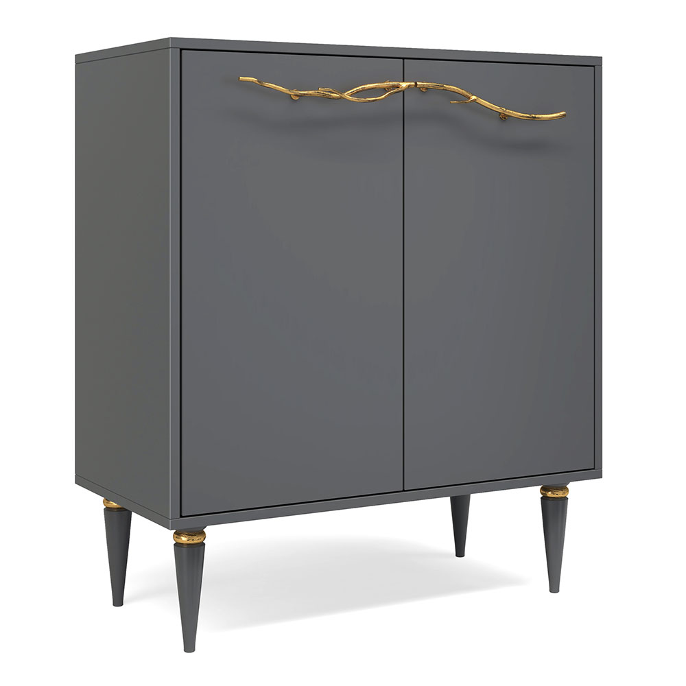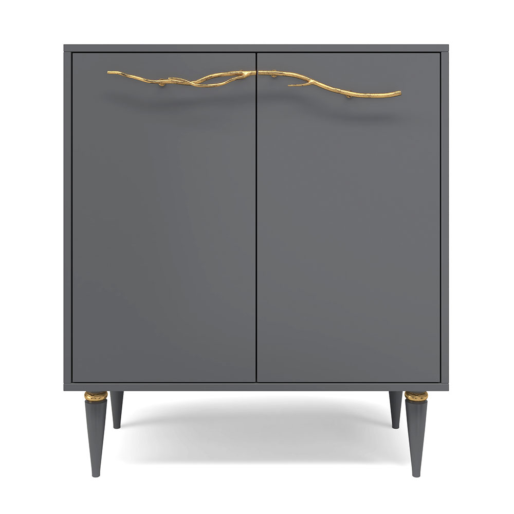 Комод с дверцами Арт напоминает своей конструкцией мини-шкаф небольшой высоты с двумя отделениями с полками для хранения вещей, скрытыми за распашными дверцами.